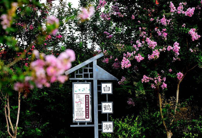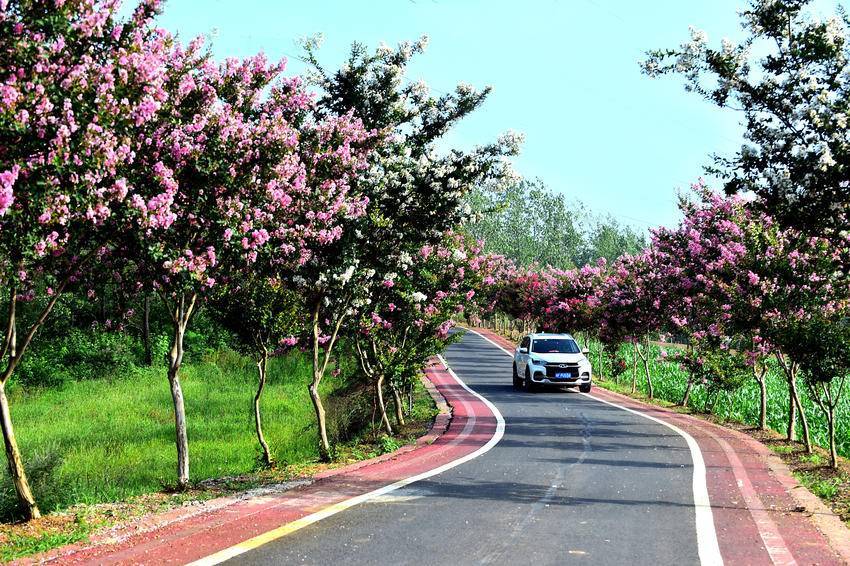 湖北日报客户端讯(通讯员熊明银、黄振华、王国静 )6月30日,南漳县清河管理区白鹤湖社区的紫薇路两旁姹紫嫣红,张开双臂迎接游人们前来打卡郊游。