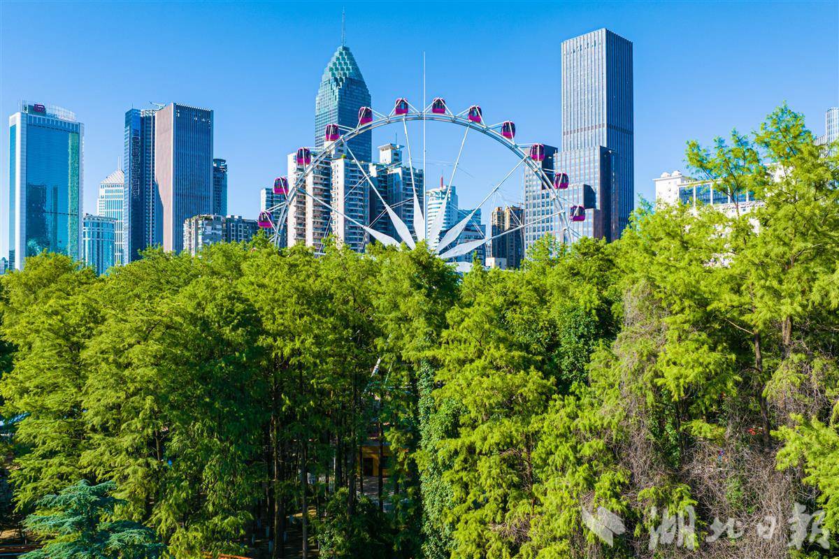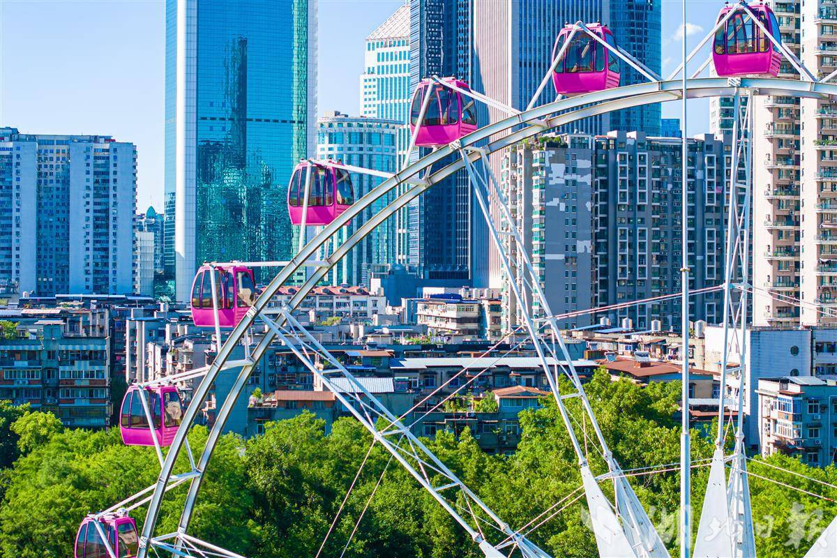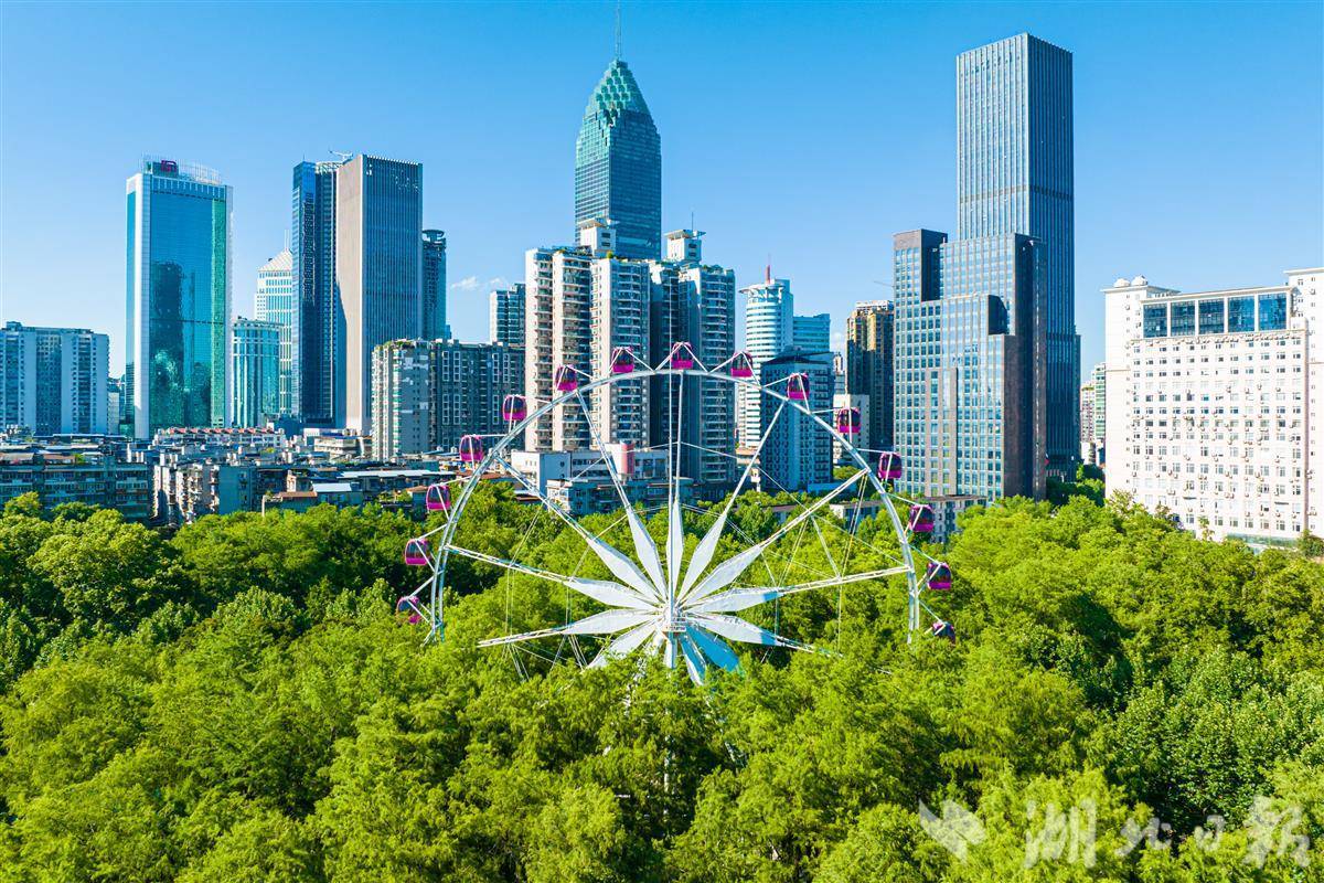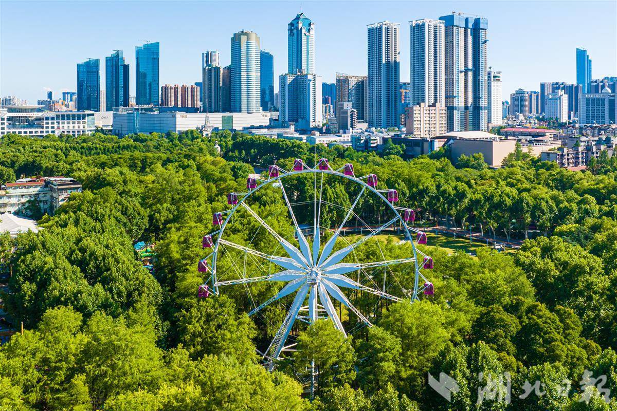 7月3日,中山公园42米高的摩天轮藏身于城市中心。(湖北日报全媒记者 任勇 摄)
