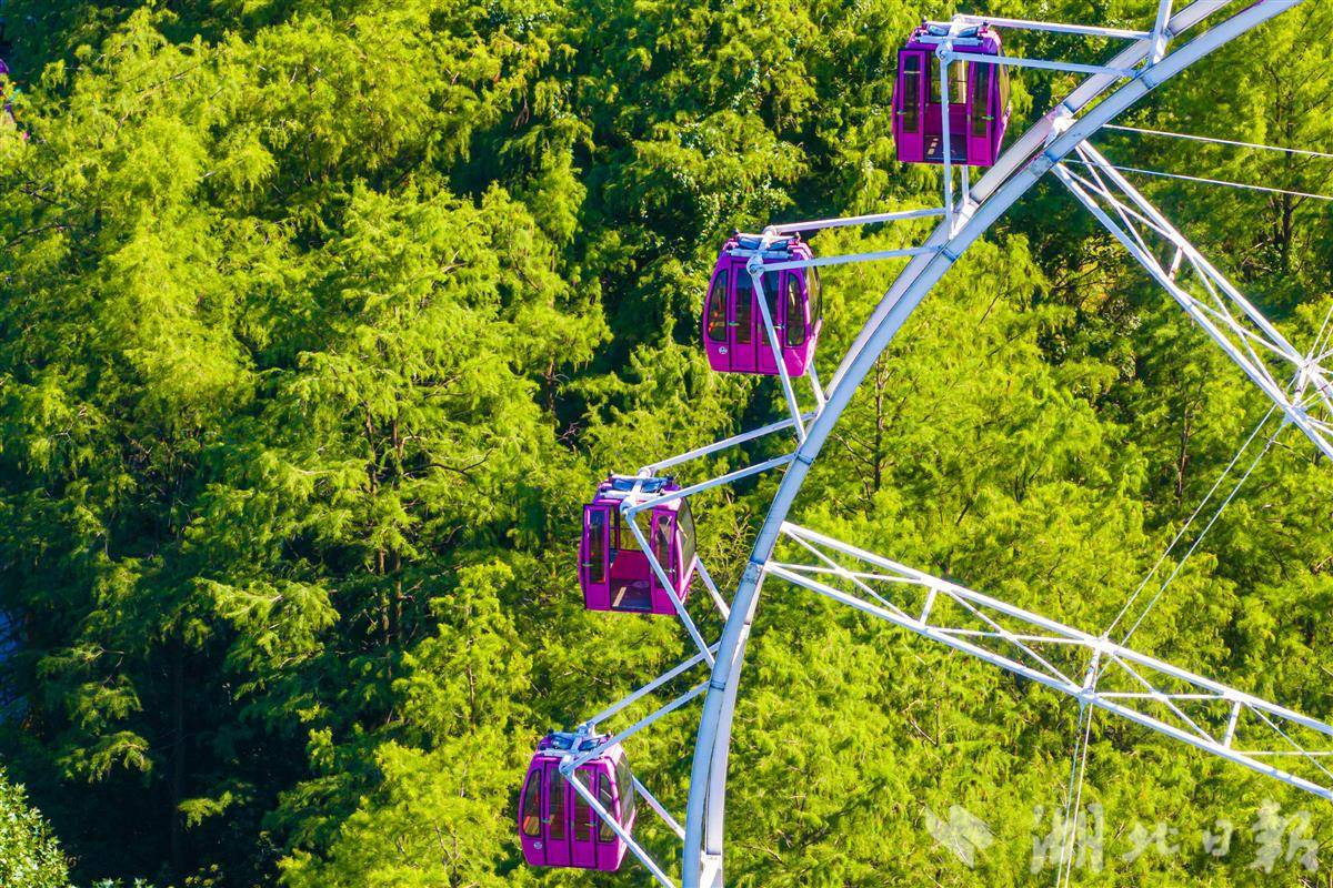1986年,武汉市第一座摩天轮在中山公园落成,成为一代又一代武汉人童年记忆中的标志性游乐设施。2010年重建,黄白配色的摩天轮陪伴市民度过诸多欢乐时光,见证了城市变迁与人们的成长。2025年初,黄白配色的摩天轮换装为石南紫色。(湖北日报全媒记者 任勇 摄)