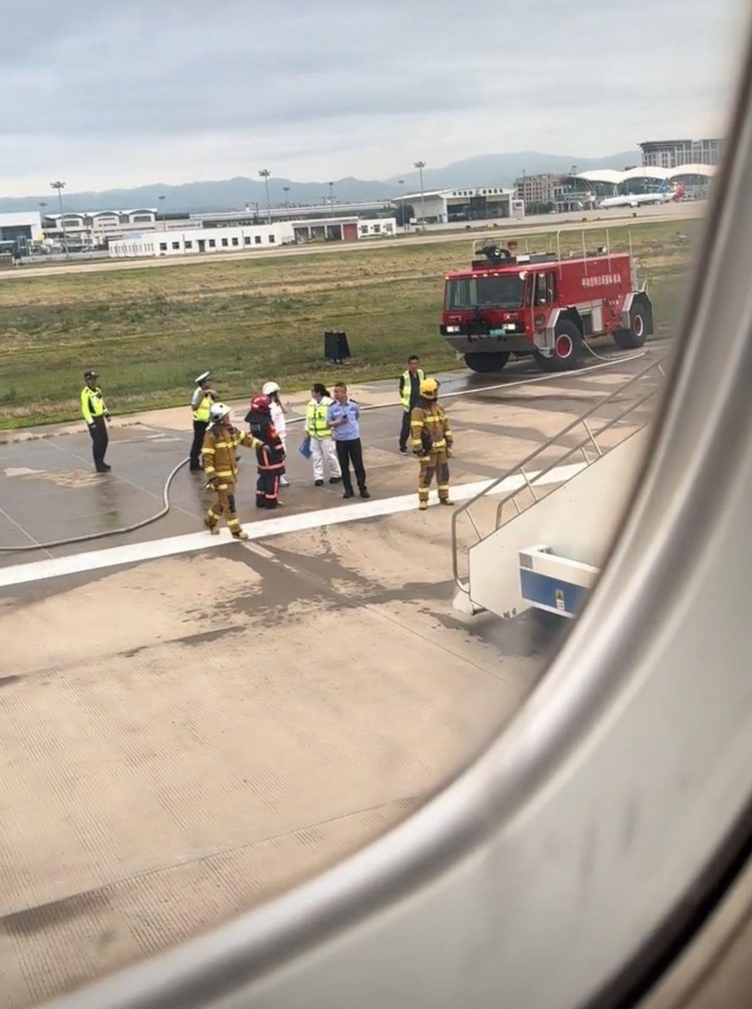 天津航空GS7833次航班停飞后,有消防、公安、救护人员赶到现场(来源:网络)