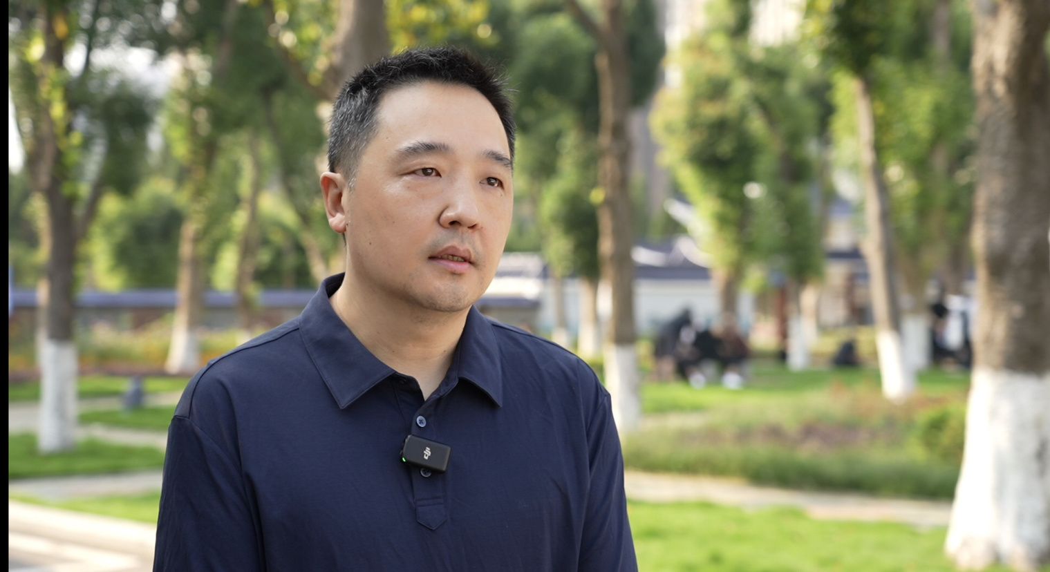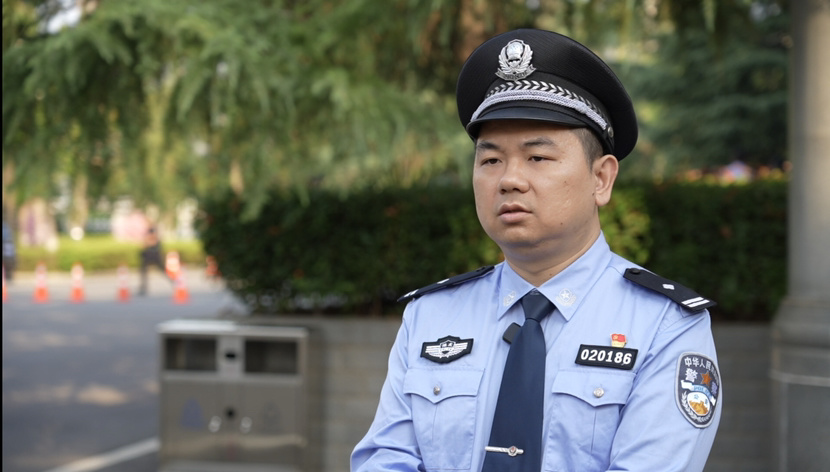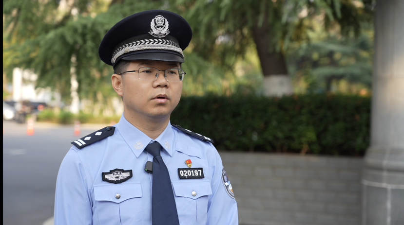 图为武汉市公安局科技信息化支队三大队民警胡磊接受记者采访。