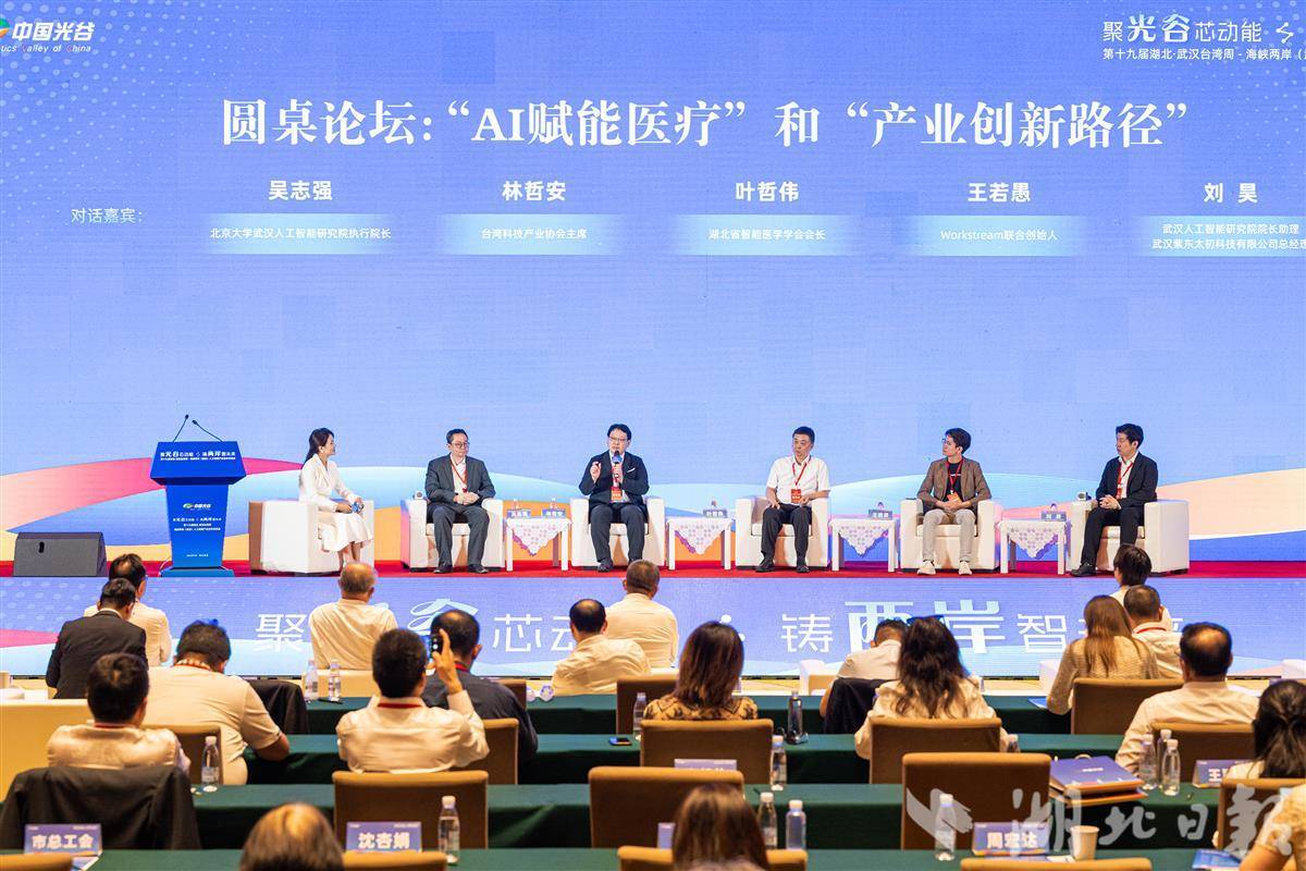 海峡两岸人工智能领域的企业代表和专家围绕“AI赋能医疗”和“产业创新路径”为主题进行对话。(湖北日报全媒记者 任勇 摄)