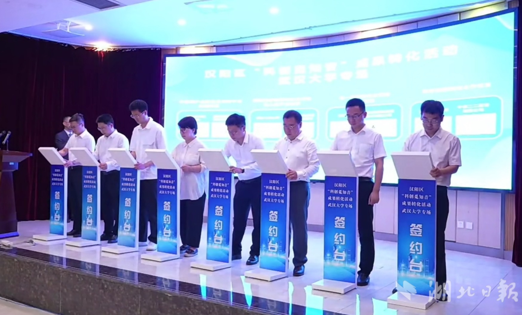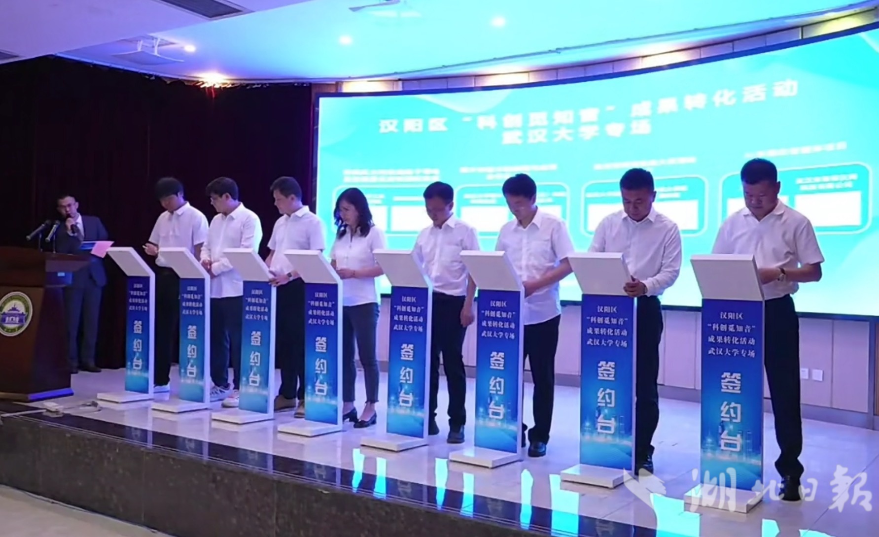 湖北日报讯(记者朱惠、通讯员谭莹、熊苹茜)继上周武汉市汉阳区“人工智能产业集聚区”规划、人工智能领域人才发展“黄金十条”的发布后,7月4日,汉阳区“科创觅知音”成果转化活动走进武汉大学,现场12个科创项目集中签约,涵盖人工智能、智能制造、大健康等前沿领域。