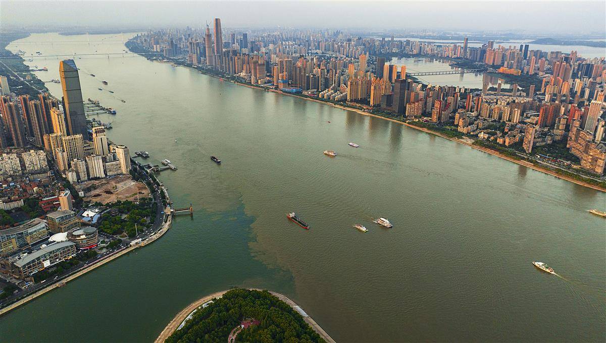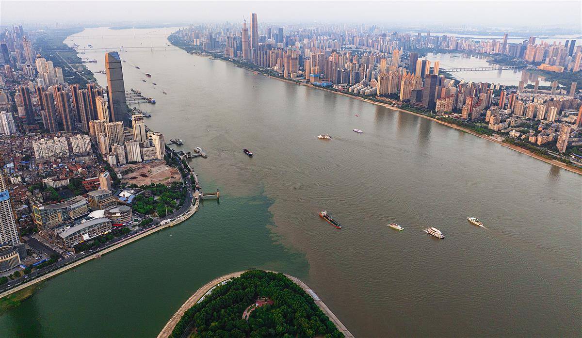 7月5日,鸟瞰武汉汉阳南岸嘴,当长江水与汉江水相交时才明白什么叫“泾渭分明”的震撼!