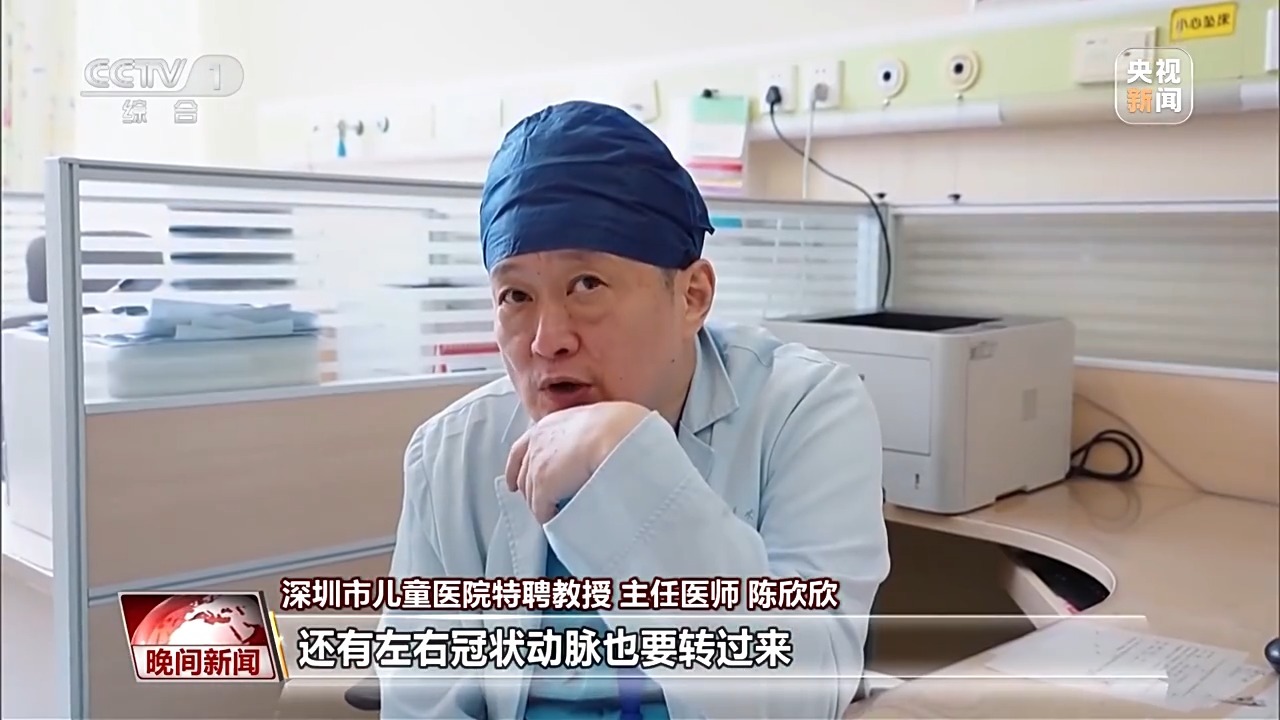 深圳市儿童医院特聘教授 主任医师 陈欣欣:技术上难点其实是把那两个大动脉转过来,还有左右冠状动脉也要转过来,因为孩子的冠状动脉很细,也就一点几毫米。