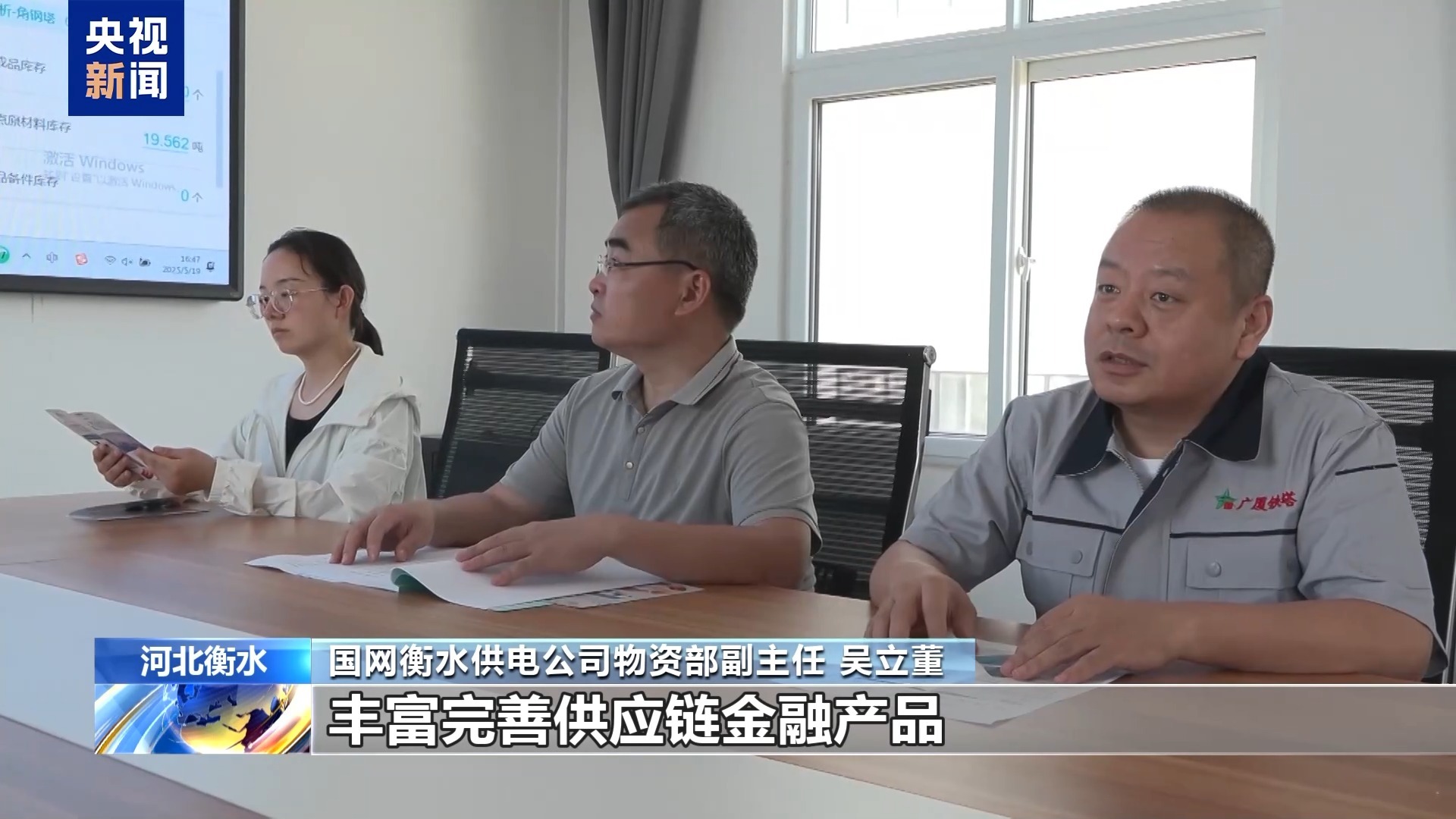 国网衡水供电公司物资部副主任 吴立董:我们依托电e金服平台,通过推动相关政策落地,丰富完善供应链金融产品,为符合绿色认证条件的企业,提供低利率贷款,减免相关担保费用等一系列优惠融资服务。为企业纾困解难,有力支持和推动企业绿色低碳转型。