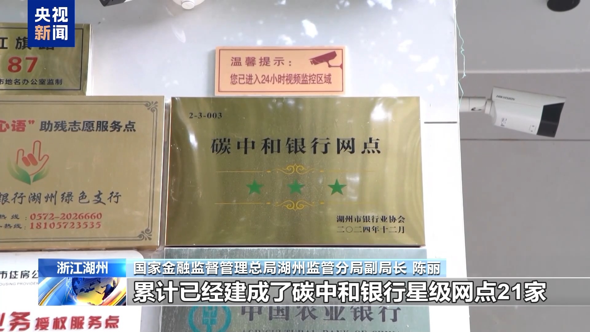 国家金融监督管理总局湖州监管分局副局长 陈丽:目前,湖州全市的绿色贷款占各项贷款比重已达35.03%,累计已经建成了碳中和银行星级网点21家。