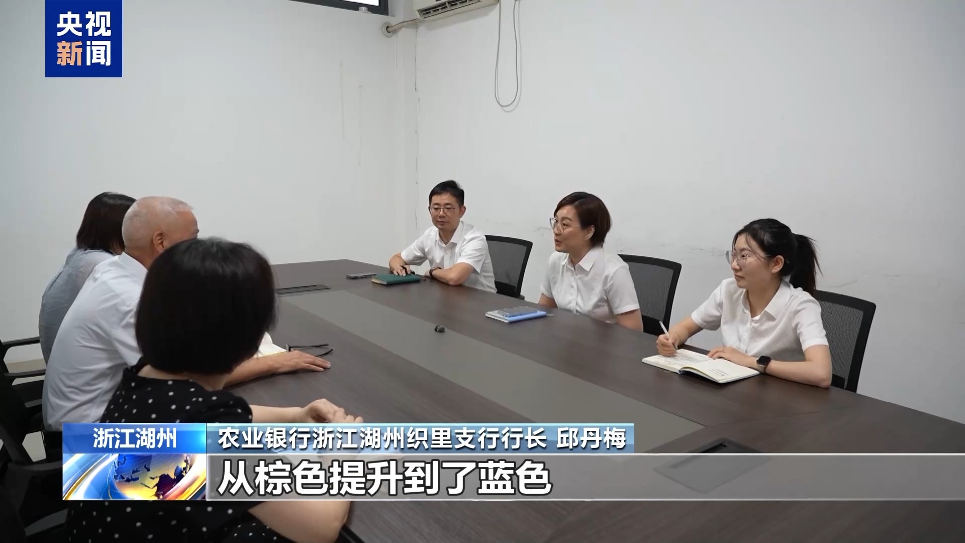 农业银行浙江湖州织里支行行长 邱丹梅:因为你们企业的碳账户从棕色提升到了蓝色,所以贷款利率有享受30个BP(基点)的优惠。