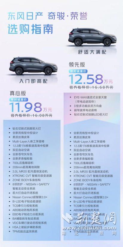 荆楚网(湖北日报网)讯(记者王博 通讯员王芳)7月2日,东风日产奇骏・荣誉焕新上市,新车共有两款车型,奇骏·荣誉真心版限时诚意价11.98万元,奇骏·荣誉领先版限时诚意价12.58万元。作为东风日产SUV主力车型,奇骏·荣誉承载百万用户的信赖,秉承专业SUV基因,实现科技、空间、外观三大维度焕新,为用户带来更智能、更舒适、更便捷的出行体验。从2008年征服南极的破冰之旅,到七闯无人区的勇者征途,奇骏始终以探索精神与用户并肩同行。