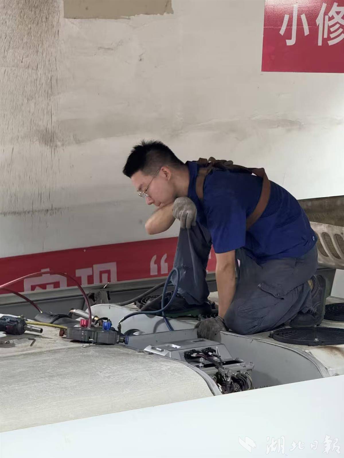 “车顶上的桑拿工”:40℃高温下的空调抢修战