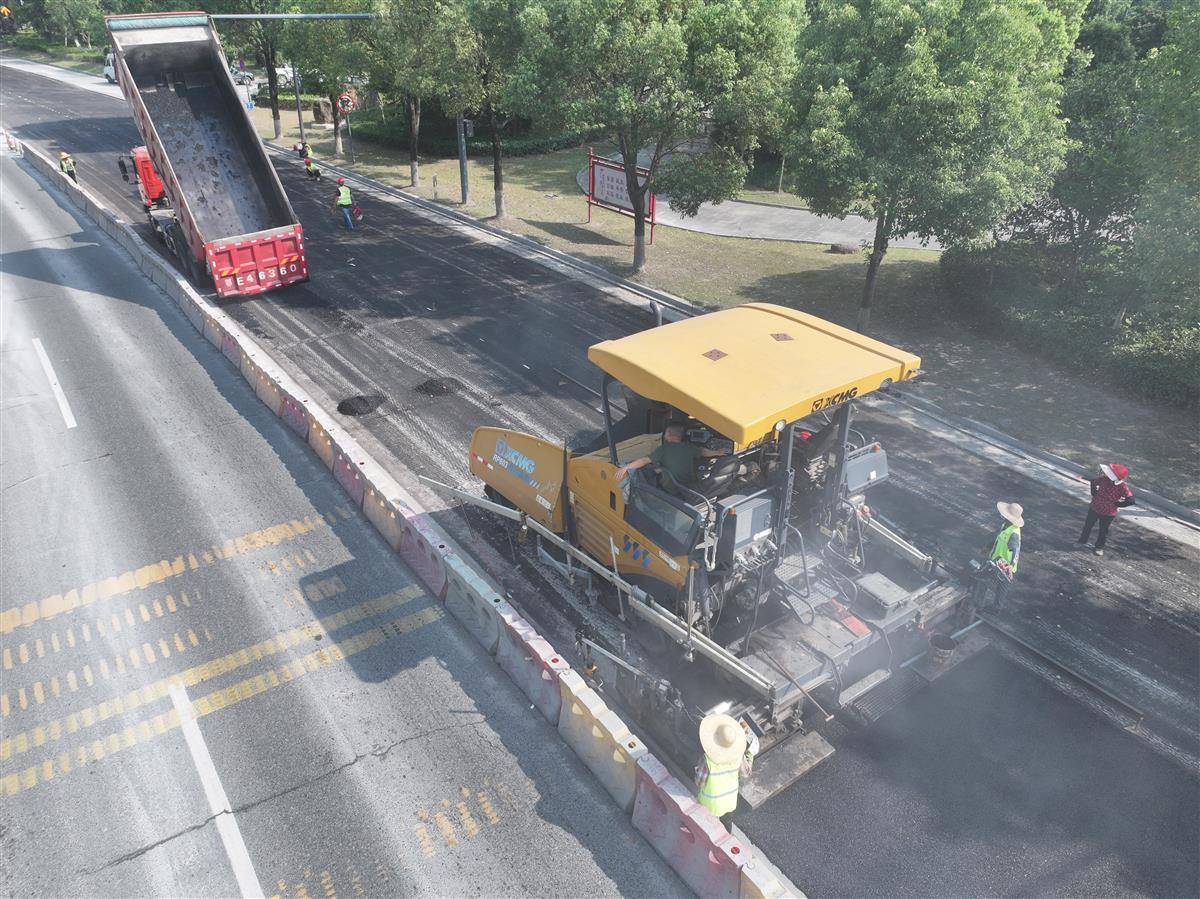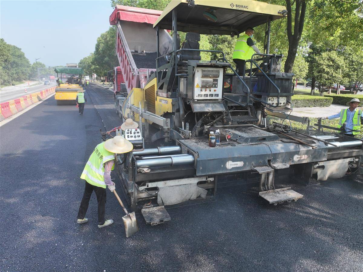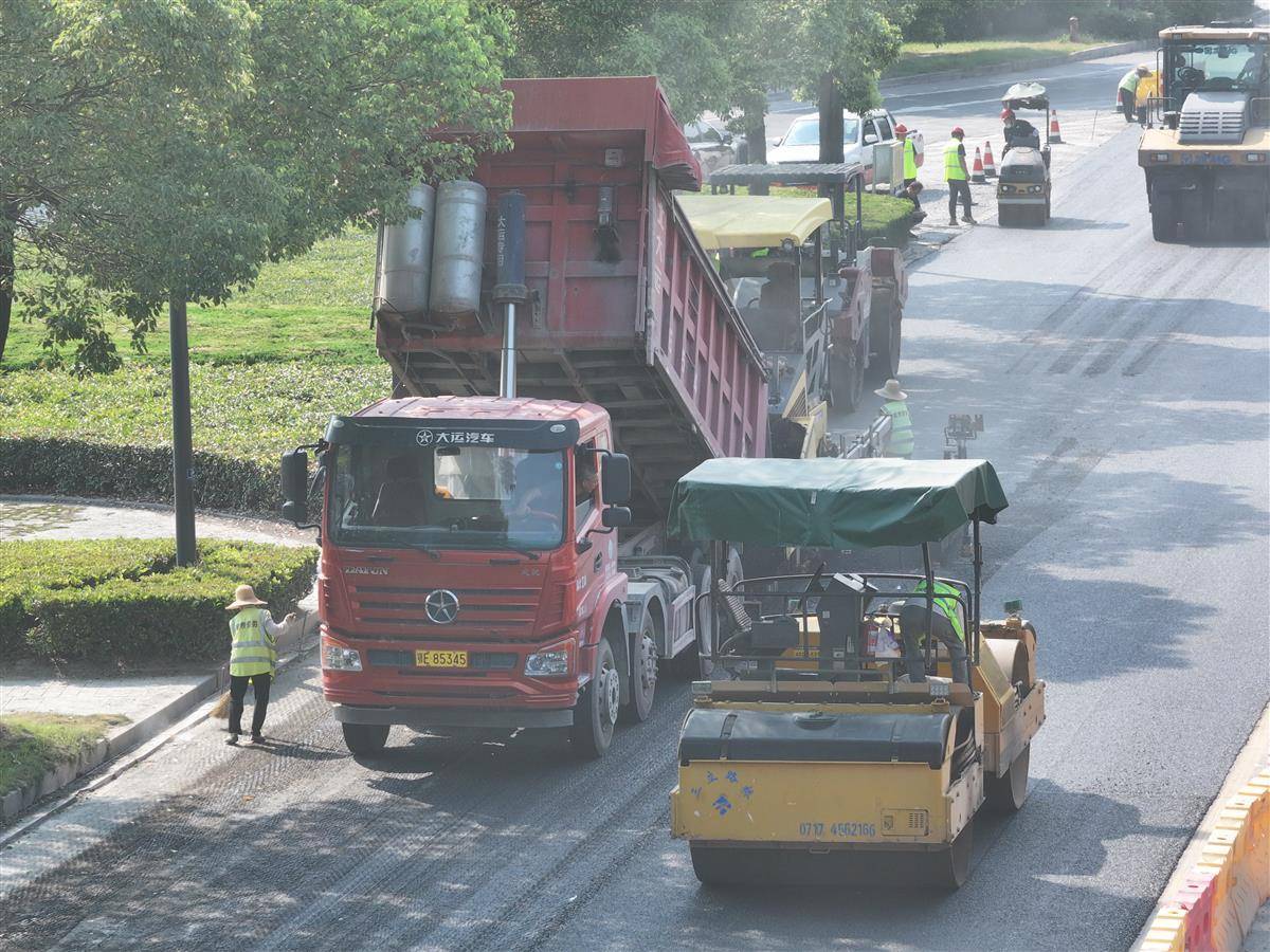 7月8日,在宜都市境内的S254孙家溪桥至莲花大道段路面工程改造现场,热浪扑面而来,摊铺机轰鸣运转,压路机来回碾压。160多度的沥青在运输车上蒸腾,忙着操作各种机械及工具的工人们,工作服早已被汗水浸透。据悉,高温天气是沥青路面施工的“黄金期”,炎热的天气能显著提升沥青的粘连性,确保铺设质量更优,所以夏季是改造柏油路面的最佳时节。