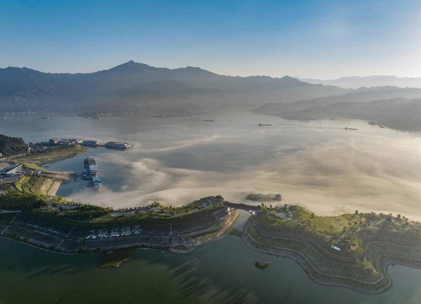 湖北日报客户端讯(通讯员吴承忠)2025年7月5日清晨,位于湖北省宜昌市秭归县的三峡高峡平湖坝前水面晨雾弥漫,在清晨阳光的映射下,美轮美奂,宛如仙境。