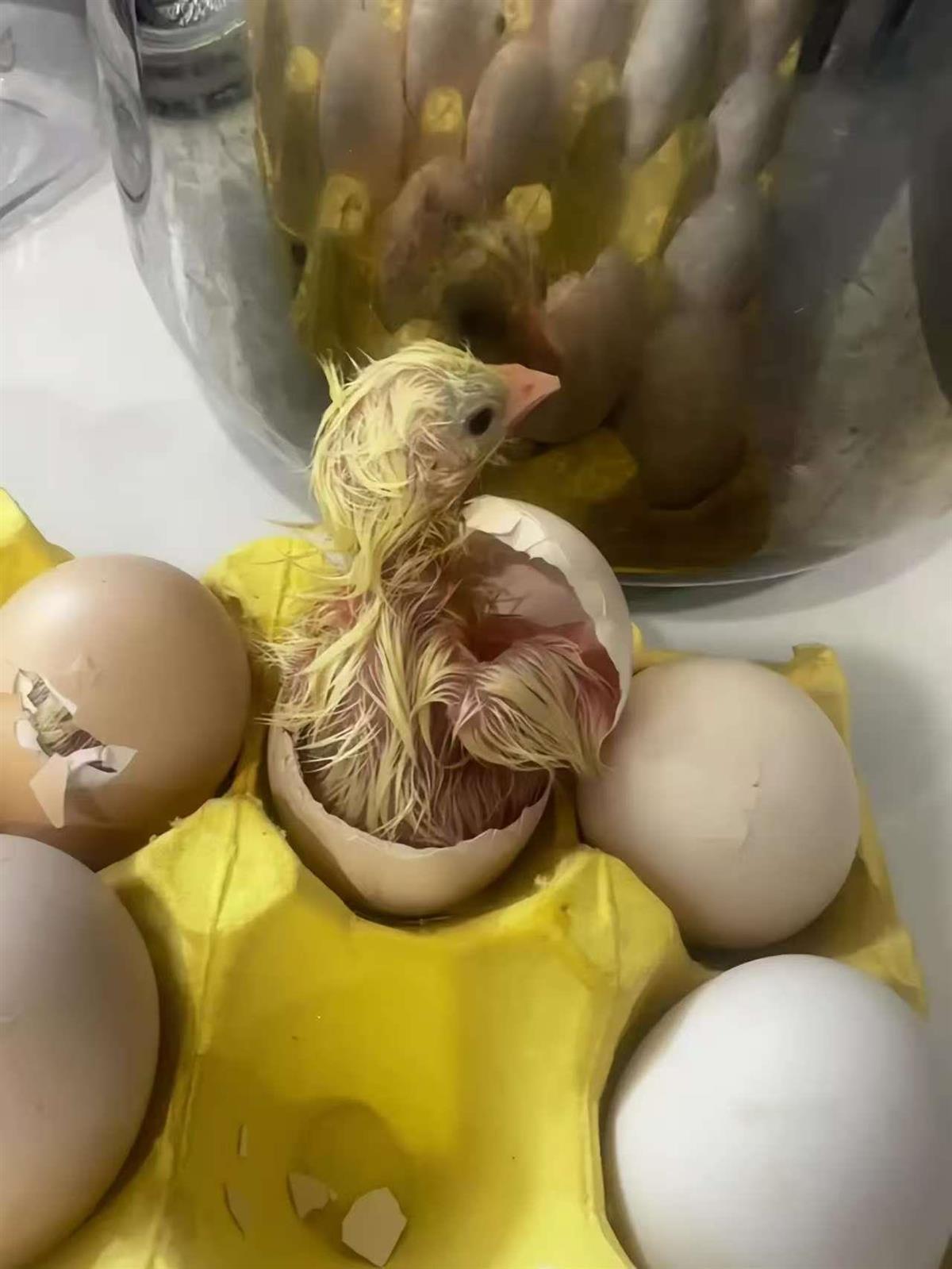 7月8日,山东青岛一名网友发视频称,她家准备用来吃的90个“活珠子”(即孵化到即将破壳而出的小鸡胚胎),竟在自己离家两天后孵化出了70只小鸡。极目新闻记者了解到,这批“活珠子”7月1日从孵化场出货,没想到7天后还能孵出小鸡。