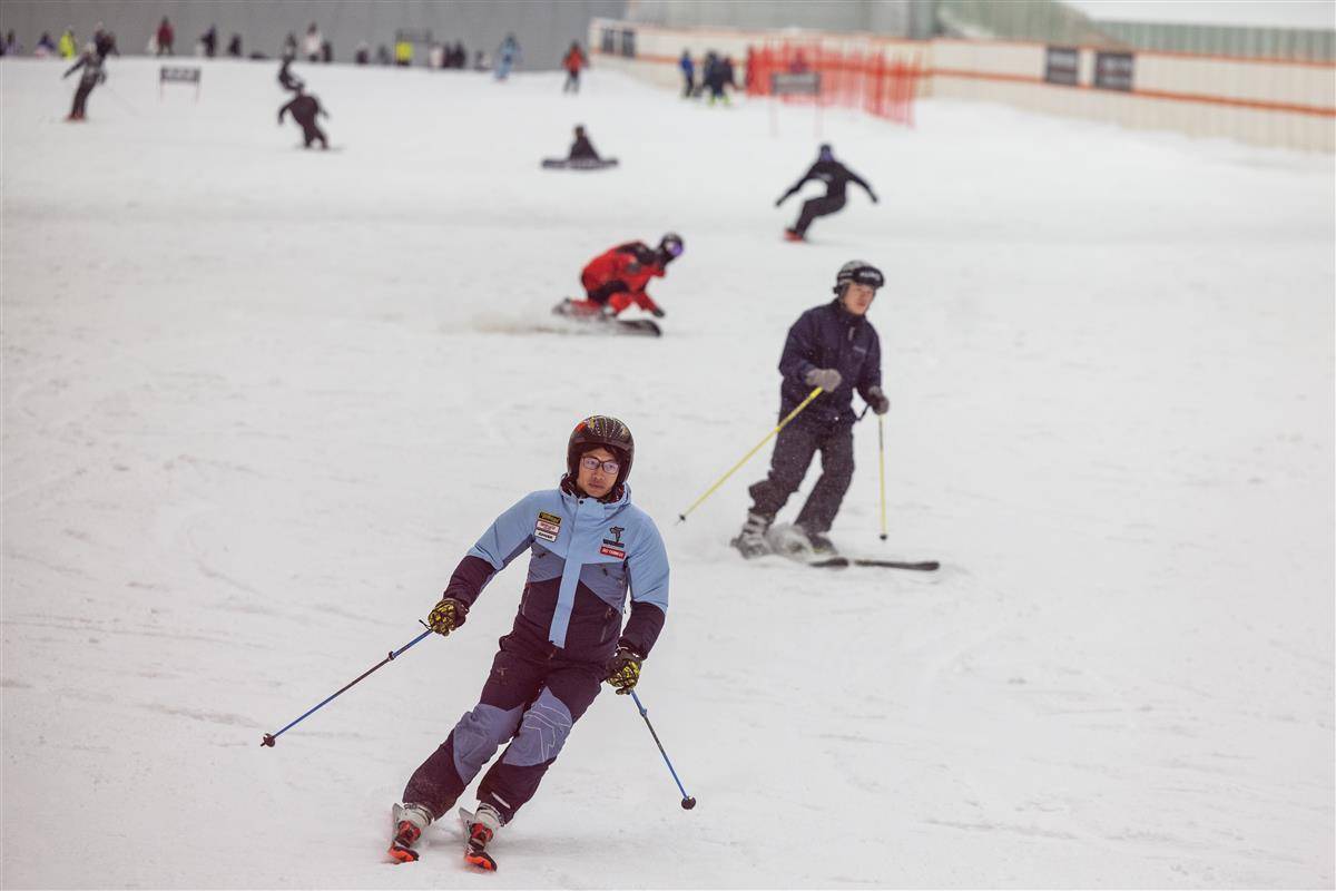 2025年7月8日,在武汉市黄陂区甘露山国际滑雪场内,市民游客在滑道上驰骋并享受冰雪带来的快乐。武汉持续高温催生“反季节”旅游热潮,甘露山国际滑雪场迎来暑期客流高峰。7月以来,该雪场日均接待游客突破3000人次,其中超三成来自外省游客。38℃的烈日下,-5℃的冰雪场馆成为市民避暑新选择。(湖北日报全媒记者 倪娜 通讯员 俞果 摄)