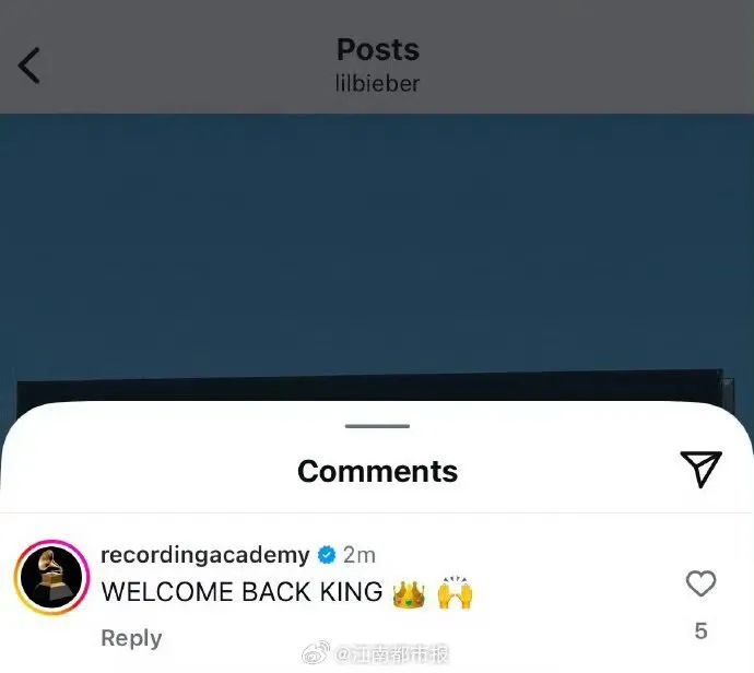 目前,比伯官网已上架该专辑的黑胶唱片、CD及电子版,售价分别为42.99美元、17.99美元、11.99美元。随后,格莱美官方账号国外社交媒体下留言:“WELCOME BACK KING。”