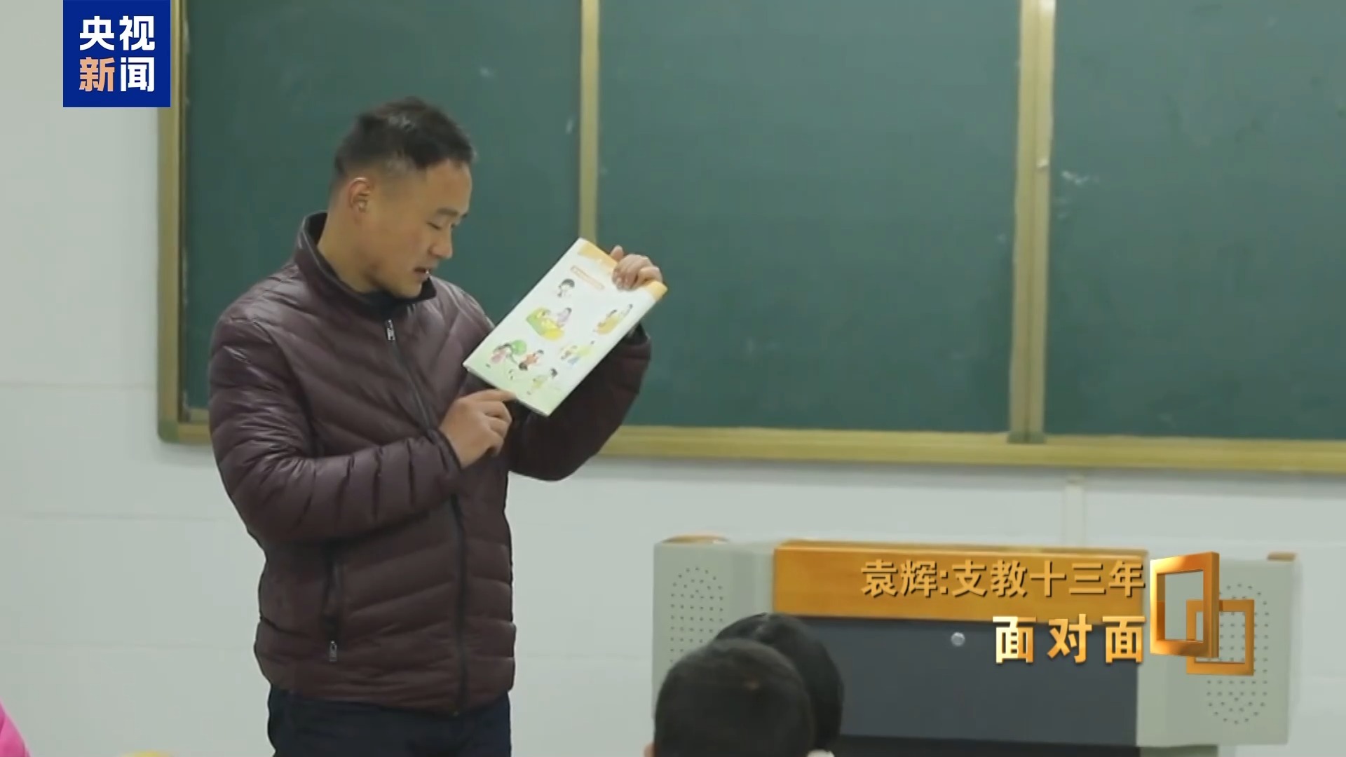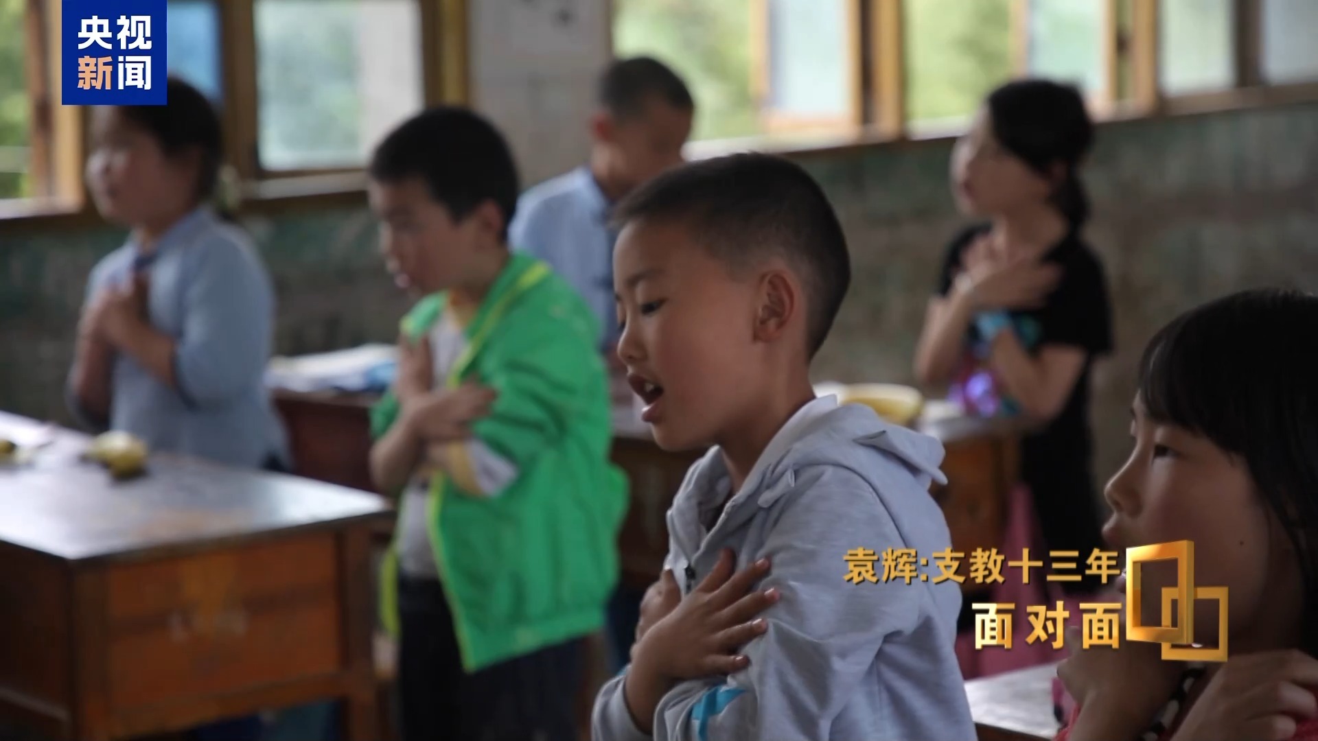 袁辉:首先普通话要讲得好,但是方言也要学好,所以我当时就做了一个聪明的做法,我说同学们,你们念一首诗的时候,看我手心,手心对着你们的时候就说普通话,千山鸟飞绝,反过来你就得用方言念,万径人踪灭,我再转过来,你就得用普通话。还有跟老师对话的时候,尽量多说普通话,外面来的包括记者都觉得,这里的孩子不像山里的孩子。