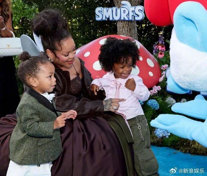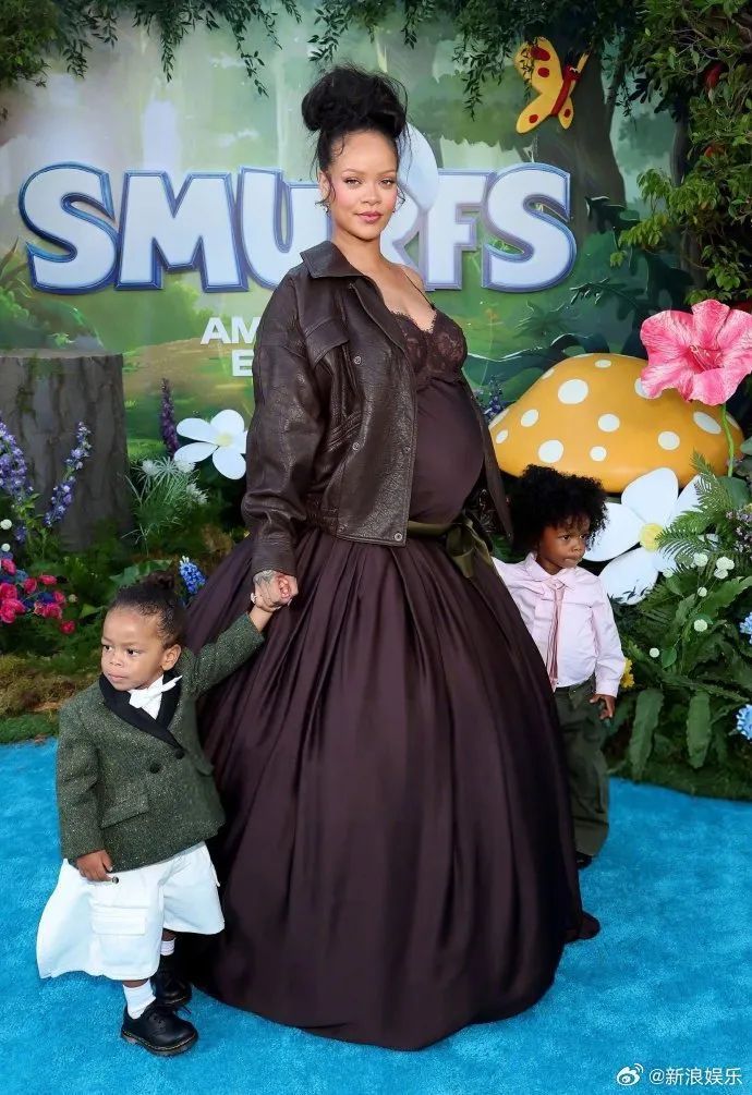 13日,Rihanna蕾哈娜带娃亮相《魔法蓝精灵》洛杉矶首映礼,她在片中为“蓝妹妹”配音。蕾哈娜身穿深紫色蕾丝长裙配皮衣,三胎孕肚十分明显,左手一个娃,右手一个娃。当又被问到“新专”催更,蕾哈娜(笑一下算了):“呃呃~《蓝精灵》~”