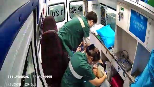 医护人员在救护车上持续对患者进行抢救。 宜昌120急救中心供图