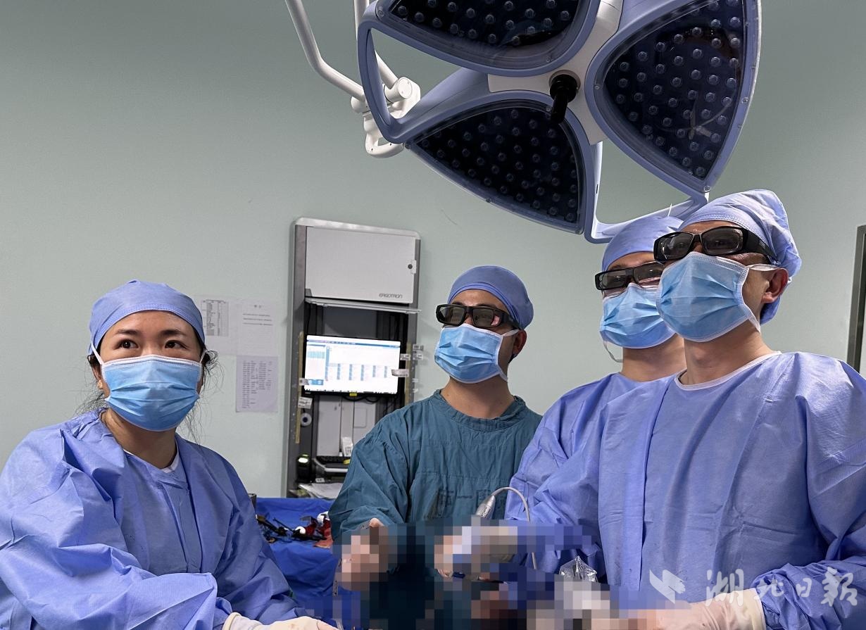 武汉市第一医院泌尿外科副主任吕磊(右一)团队为患者进行腹腔镜肾切除手术 通讯员马晓静摄