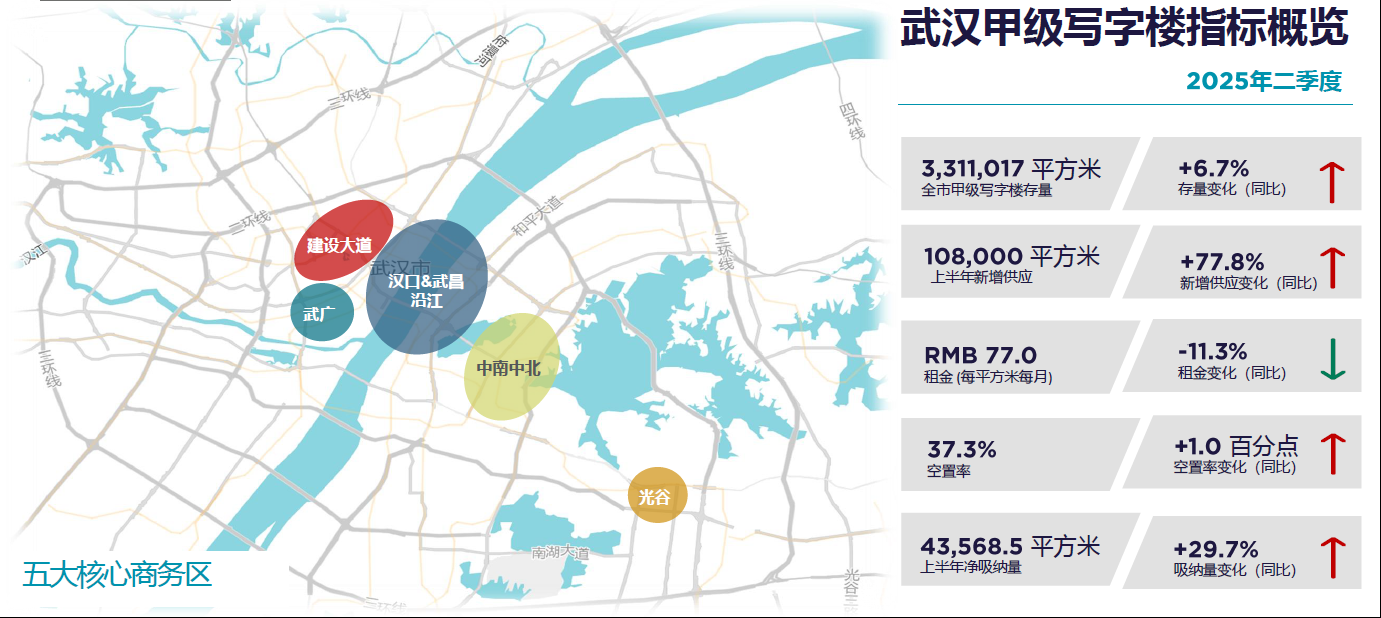 长江日报大武汉客户端7月15日讯(记者冷靖华)7月15日,全球性房地产服务和咨询顾问公司戴德梁行发布2025年上半年房地产市场情况显示:今年上半年,武汉甲级写字楼市场中的核心商务区净吸纳量达4.4万平方米,相比去年同期增长近三成。专家认为,武汉甲级写字楼市场步入“深度运营”阶段,高科技企业已成为武汉写字楼租赁增量需求的重要支撑。