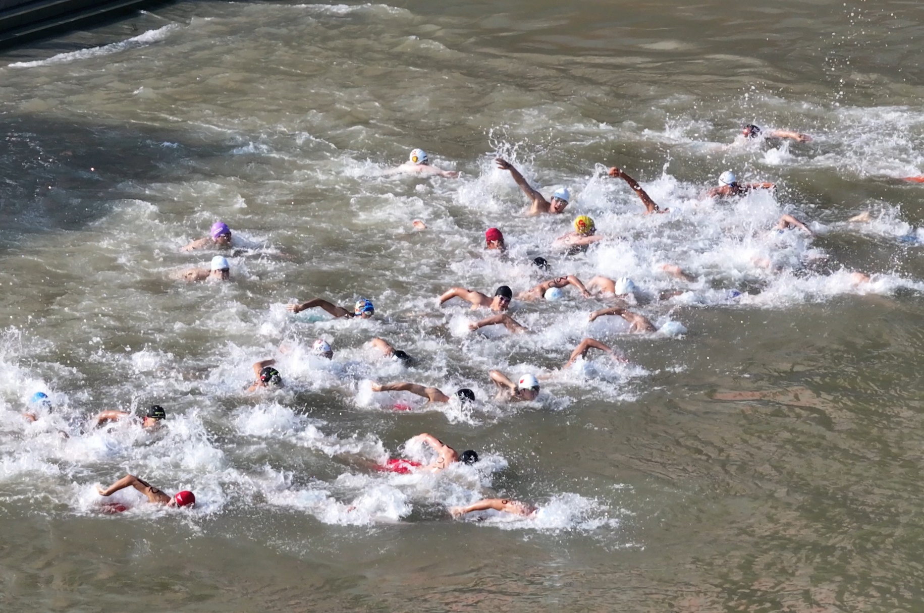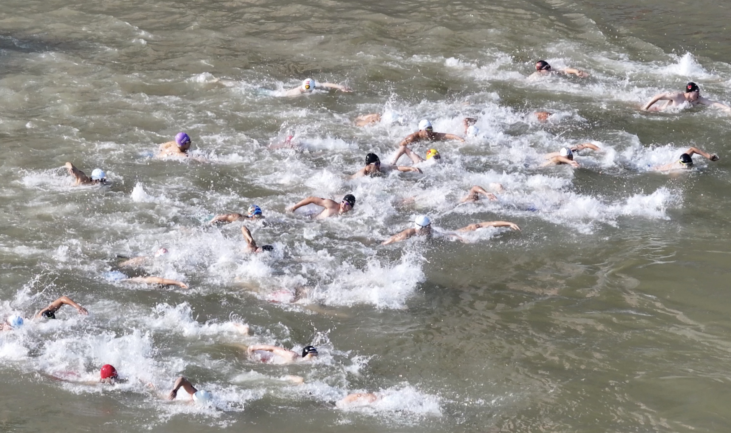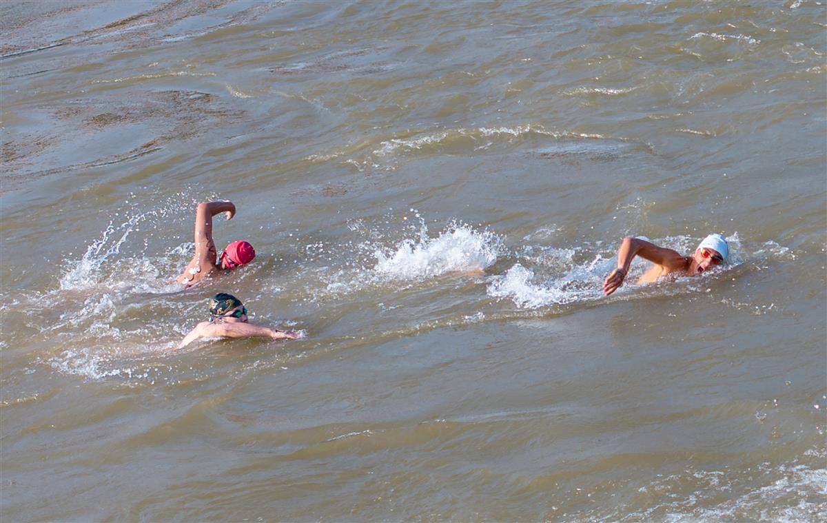 7月16日,运动员在抢渡赛中劈波斩浪。