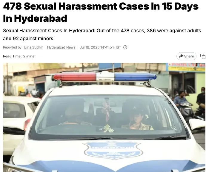 据印度新德里电视台7月16日报道,在印度海得拉巴15天内发生478起性骚扰案件。478名被捕人员中386人为成年人,92人为未成年人。