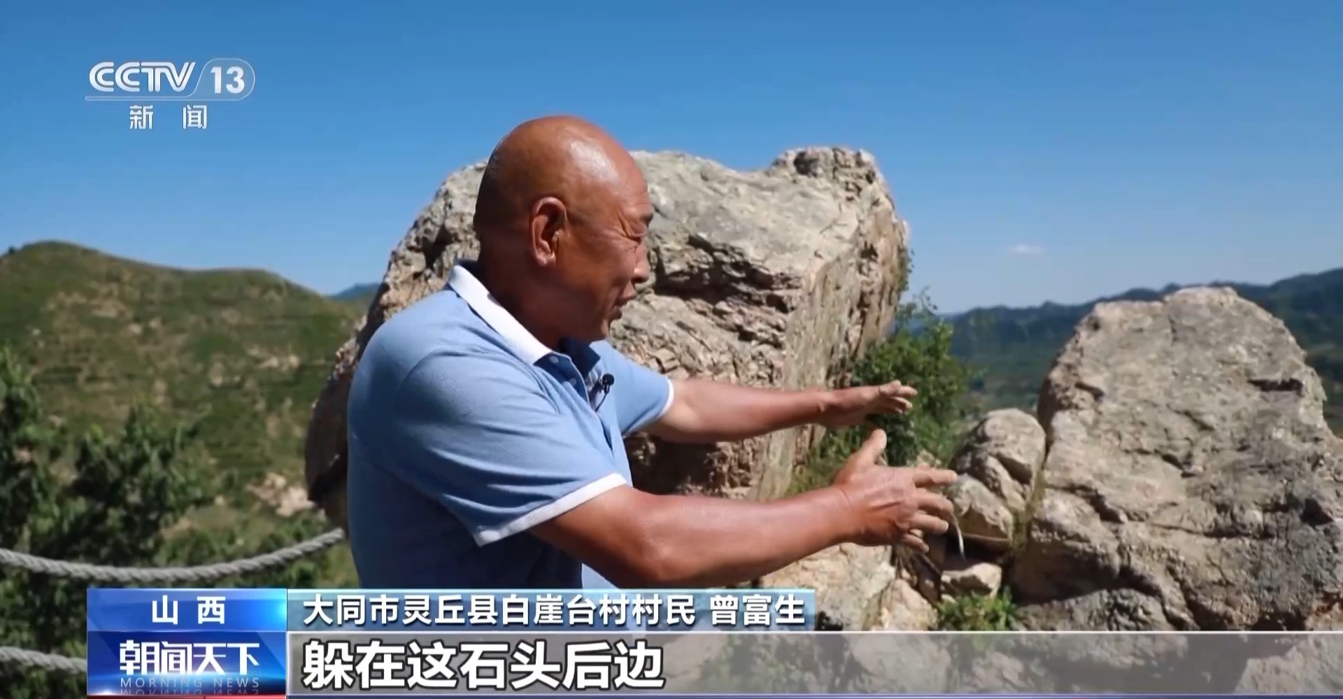 大同市灵丘县白崖台村村民 曾富生:当时我的爷爷就把八路军带到这,躲在这石头后边。因为他们在上面埋伏着,日军打不着他们,只能朝天打。日本鬼子向西侧突破,抢占制高点。八路军包围过去后和日军拼刺刀,用大刀砍。