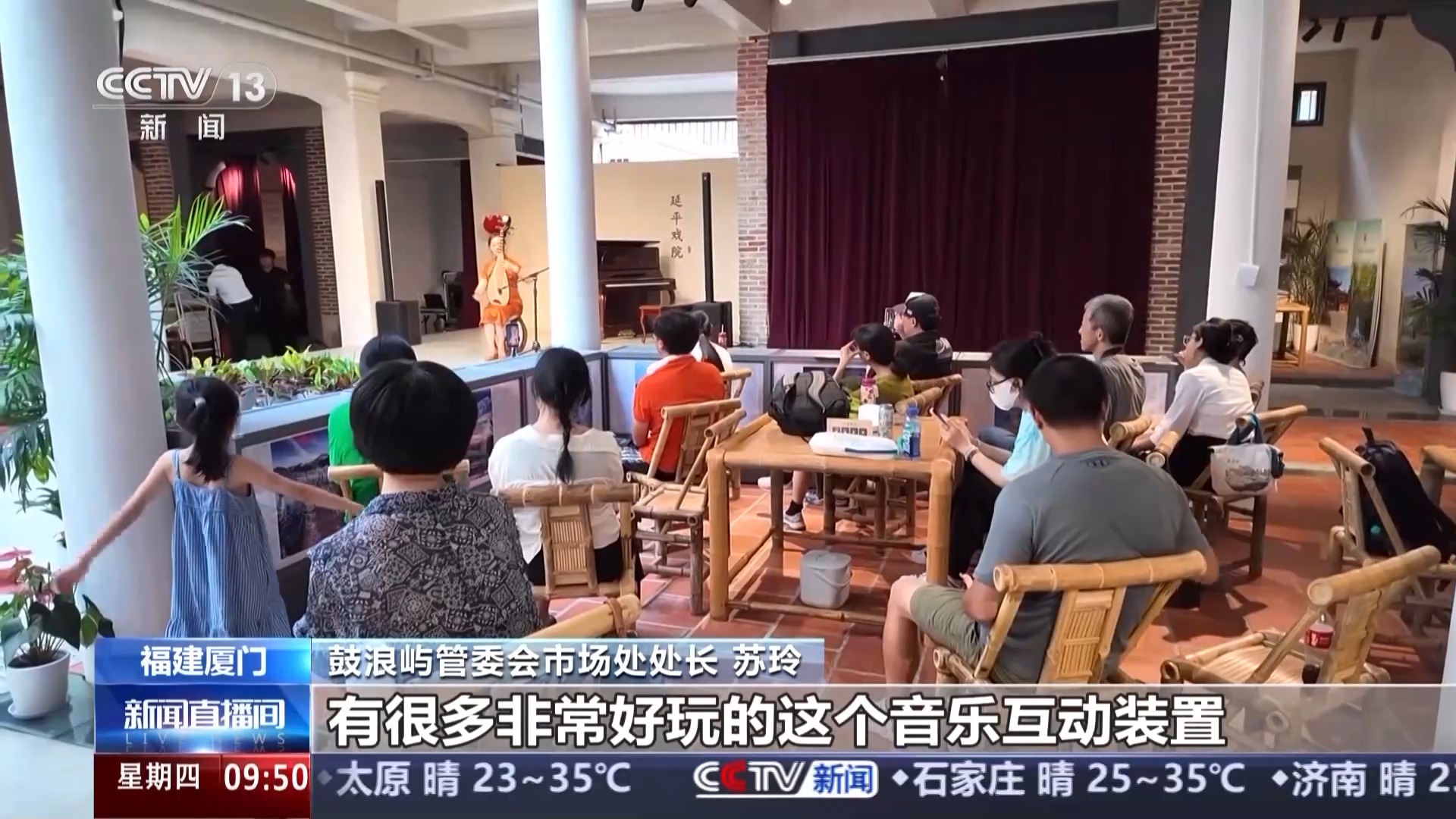 鼓浪屿管委会市场处处长 苏玲:全年龄段的游客都能够在音乐的氛围中找到很多的共鸣。有很多非常好玩的音乐互动装置,游客在这个过程中不只是一个旅游者,他也可以是一个参与者。