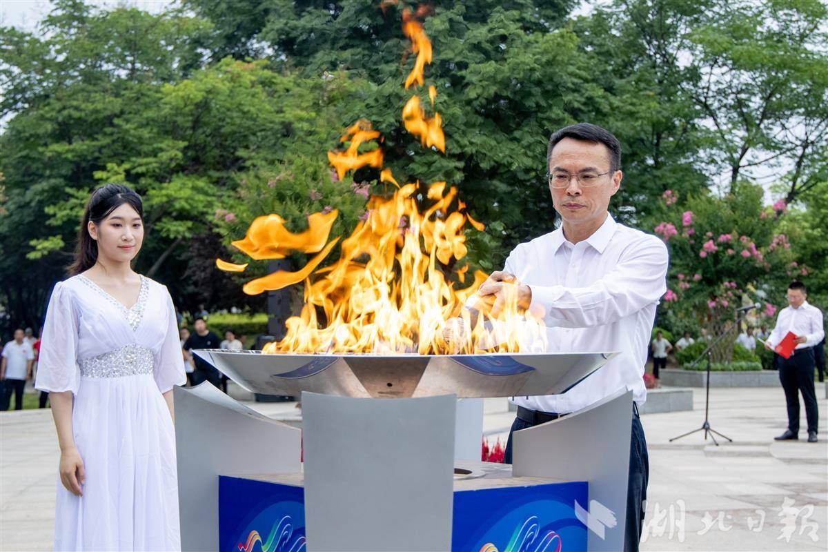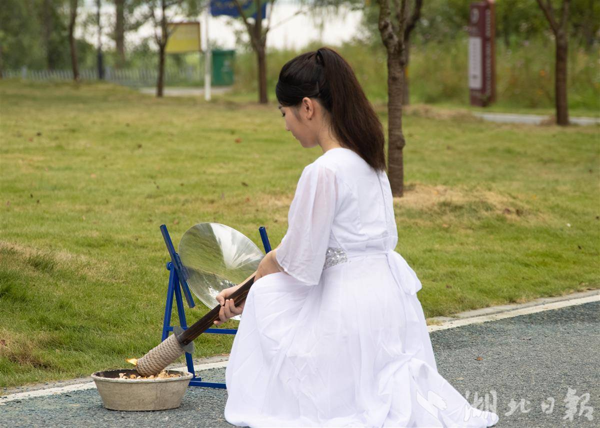 武汉市第12届运动会圣火在纱帽山遗址成功采集。通讯员李岿摄
