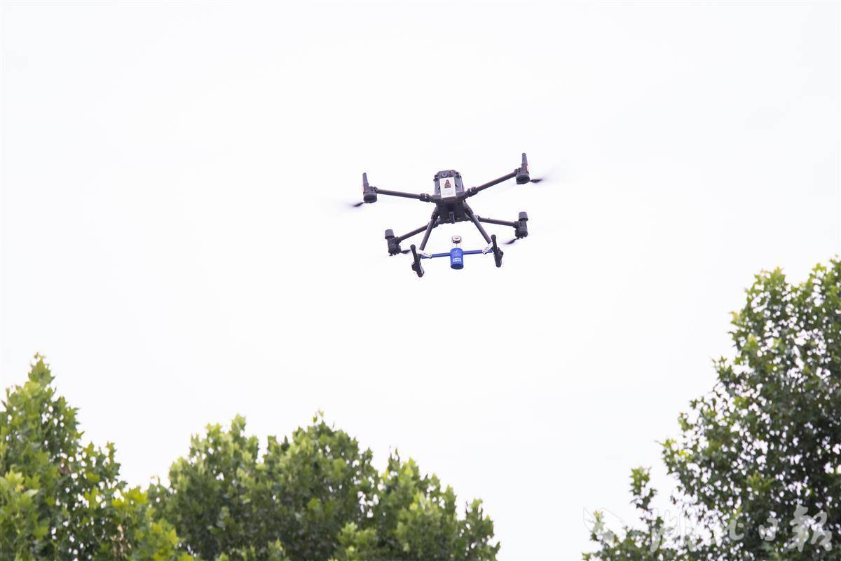 印有九凤人像的无人机载着圣火腾空而起,完成第二棒传递。通讯员李岿摄