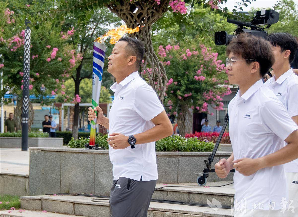 8点40分,火炬传递正式开始,第一棒火炬手为武汉车谷江大女子职业足球俱乐部主教练常卫巍。武汉车谷江大女足俱乐部是最早一批参加中国女子足球联赛的俱乐部之一,也是第一个夺得亚冠联赛冠军的中国女子职业足球俱乐部。“很自豪,也有责任感,希望女足精神能激励到更多青少年参与体育运动,朝着自己心中的梦想奋斗。”手持火炬,常卫巍难掩激动。