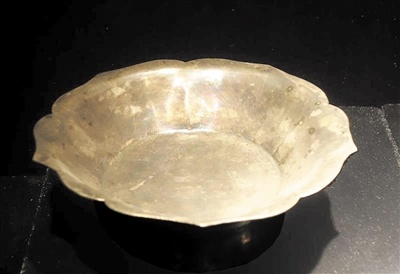 莲瓣形素面银碟