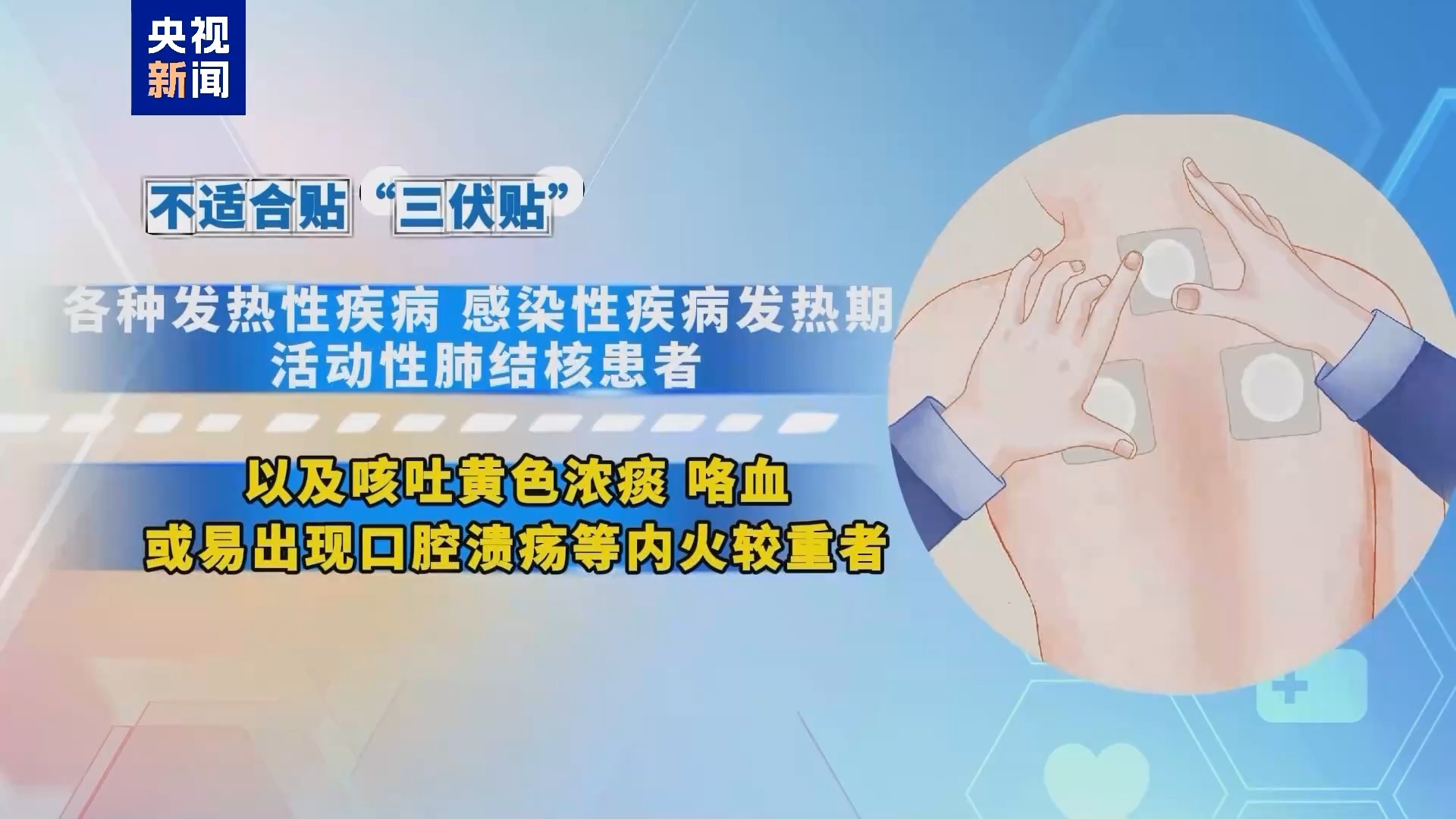 对于各种发热性疾病、感染性疾病发热期、活动性肺结核患者,以及咳吐黄色浓痰、咯血或易出现口腔溃疡等内火较重者,不建议进行“三伏贴”贴敷治疗。2岁以下的孩子由于皮肤娇嫩,贴敷容易引起感染,也不宜进行这项治疗。