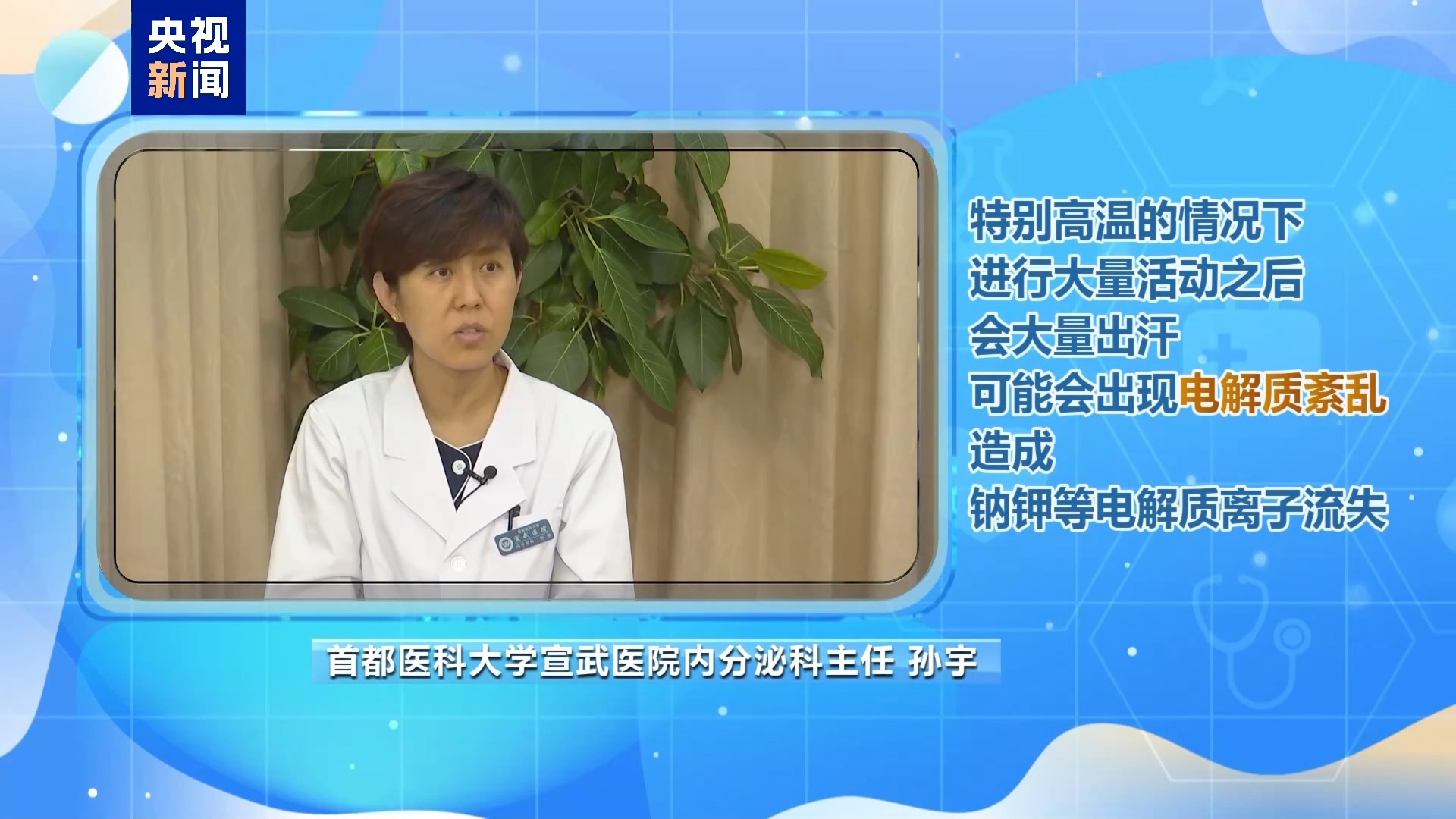 首都医科大学宣武医院内分泌科主任 孙宇:这个说法不对。因为特别高温的情况下,我们进行大量的活动之后,会造成大量出汗,有可能出现电解质紊乱,造成钠钾电解质离子流失。在这种情况下,对中老年人来说,有可能还会造成血液黏稠度增高,诱发心梗脑梗的出现。而对于年轻人来说大量损失水分之后,那么也有可能会出现中暑的情况。