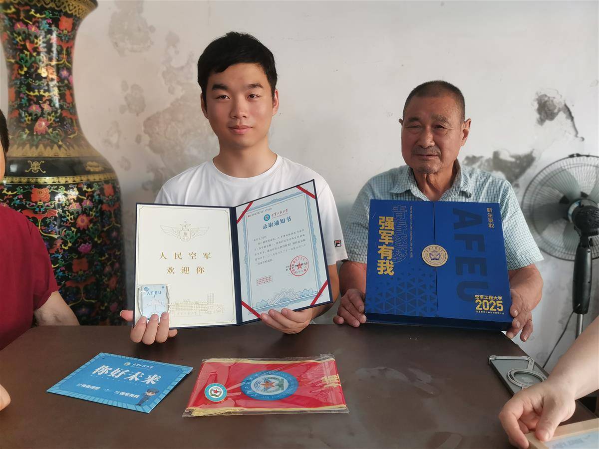 当被问及为何选择空军时,蒋昊元眼神明亮:“现在国家要建设世界一流空军,我想在蓝天战场为祖国守好‘空中防线’。”这份志向,与录取通知书上“强军有我 青春逐梦”的字眼,形成呼应。