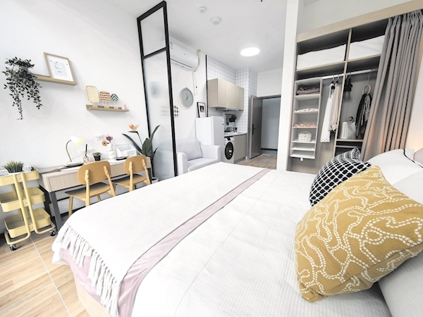 来到40㎡样板间,极目新闻记者看到,所有房间均为独门独户、独立厨卫,保障居住的私密性和舒适度;房间设计简约温馨,沙发、桌椅、衣柜一应俱全;空调、洗衣机、热水器等品牌家电提前就位。“我们在设计细节上也花了心思。比如定制嵌入式的衣柜,在卫生间配备置物架、毛巾架、镜柜等,既节省空间又方便租户日常生活。”严巍介绍说。
