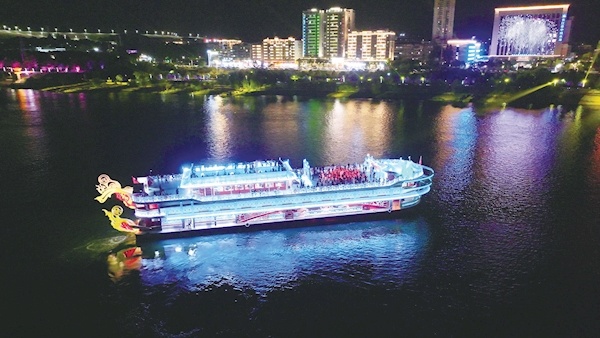 文化 IP引爆热潮。今年“五一”假期,“沧浪之星”摩天轮下,“露营+音乐”综合体验吸引数千名游客;“南水北调号”游船座无虚席,《梦回均州》实景演艺结合全息投影技术再现均州古城风貌;“一江两岸”夜景带让夜经济持续火爆,“万人专列游水都”活动单日接待游客突破8000人次;与陕西省西安市联推“问道武当山水·探秘西安兵马俑”线路,来自西安市的自驾游车队绵延于丹江口环库公路。“白天游船观大坝,夜晚水幕看电影,这样的沉浸式体验让人不想离开。”来自西安的游客王琳赞叹道。