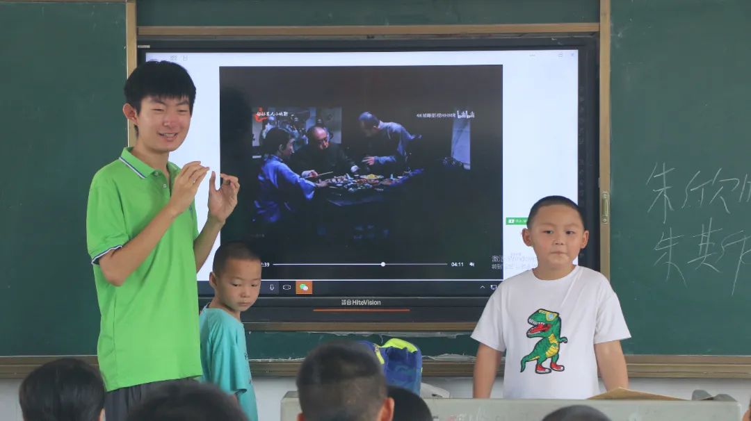 配音课程更成了“推普实践场”。队员们精选红色电影片段和动画片段,让孩子们分组配音,从咬字不清到字正腔圆,从羞涩躲闪到自信表达,孩子们的进步里藏着队员们逐句指导的耐心;情景剧演绎则让语言学习更鲜活,孩子们用学到的普通话编排小剧场,在角色扮演中爱上表达。
