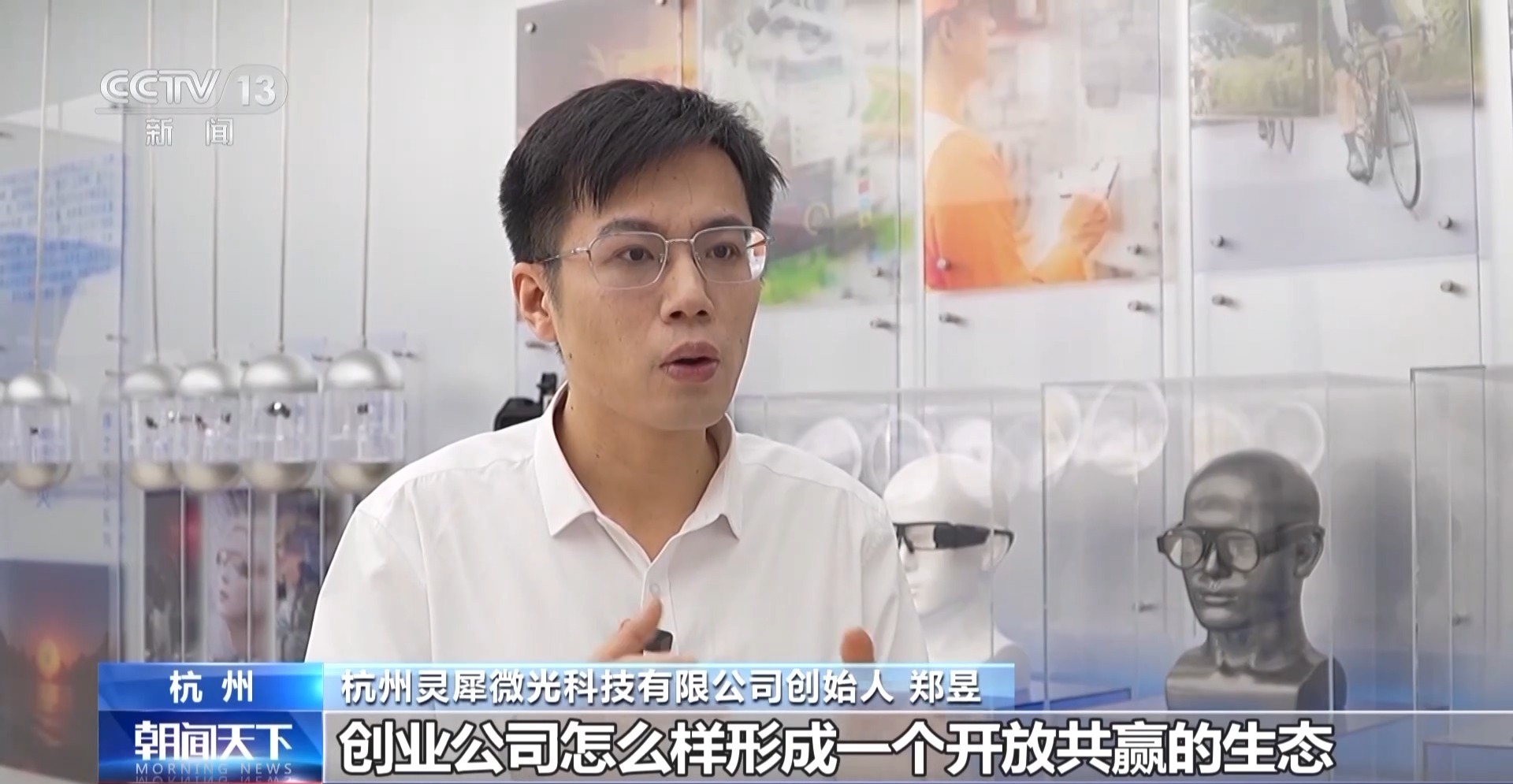 把一个创新想法变成现实,对于这家光学模组研发企业来说,只需要几天时间。企业最新研发出的二维光波导镜片,借助10乘10毫米的光学模组,可以呈现五六十寸的影像,比起传统VR眼镜效果翻了一倍多。像这样的创新产品,正是企业和园区里的软件算法、内容创作等细分领域创新型企业,协同合作的产物。