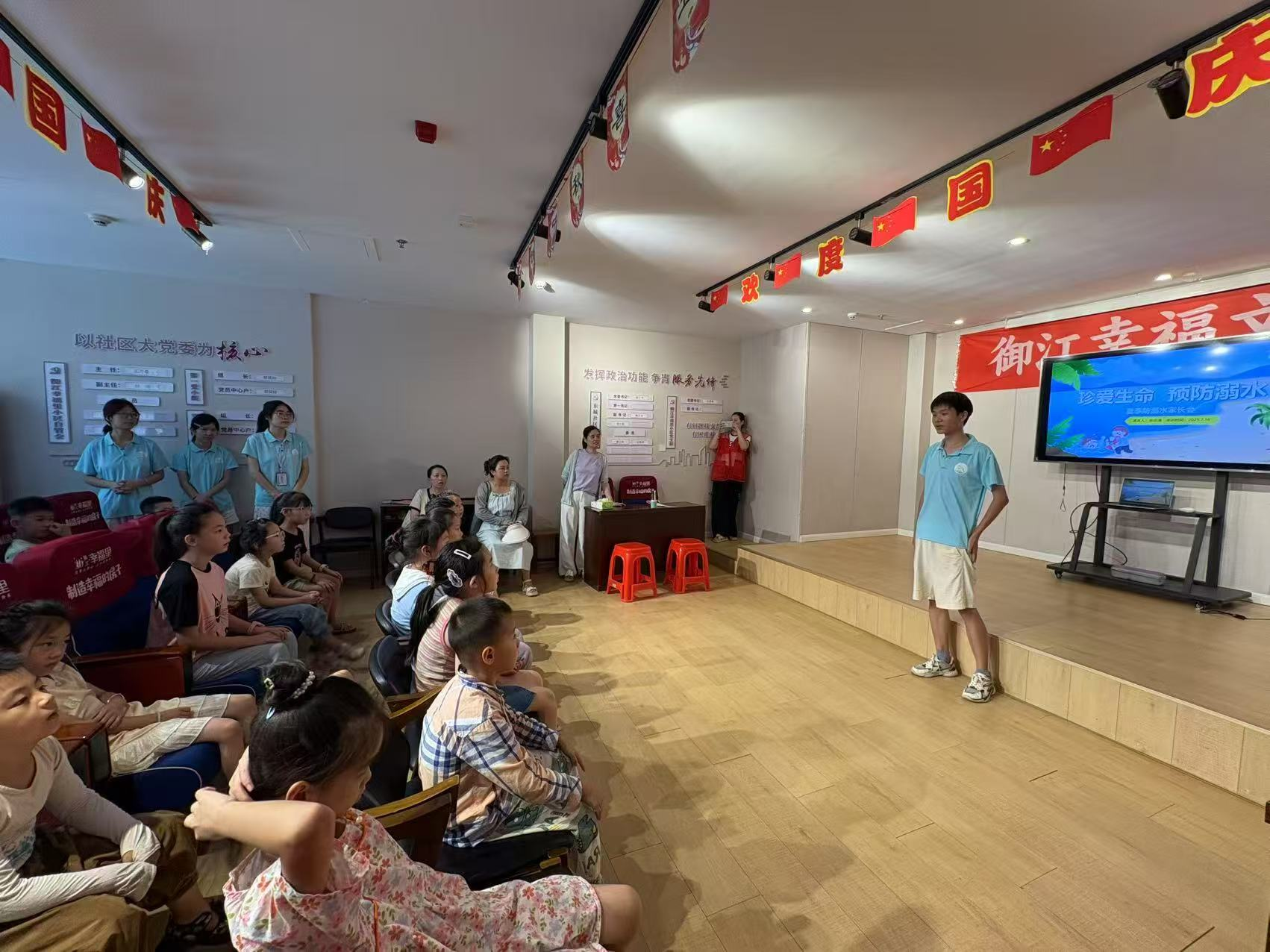 “野外水域看似平静,实则暗藏哪些危险?”“同伴落水,第一反应该做什么?”活动现场,“青遇”志愿者通过精心制作的PPT和警示视频,用通俗语言结合真实案例展开讲解:深入剖析水库、池塘等野外水域的隐蔽风险——淤泥陷足、暗流卷人、水草缠绕等,着重强调“六不准”原则(不准私自下水、不准擅自结伴游泳等),引导孩子们主动远离危险水域。核心传授“叫、伸、抛”科学救援法则:大声呼“叫”大人、用竹竿树枝等“伸”长物递送、向落水者“抛”掷救生圈等浮具,反复叮嘱未成年人不可直接下水,见义勇为更要“见义智为”。现场还演示了水中抽筋的缓解动作(如抓脚趾向身体扳拉),以及落水后保持冷静、采取仰漂姿势节省体力等实用技巧,通过真实案例和互动问答增强青少年自我保护意识。