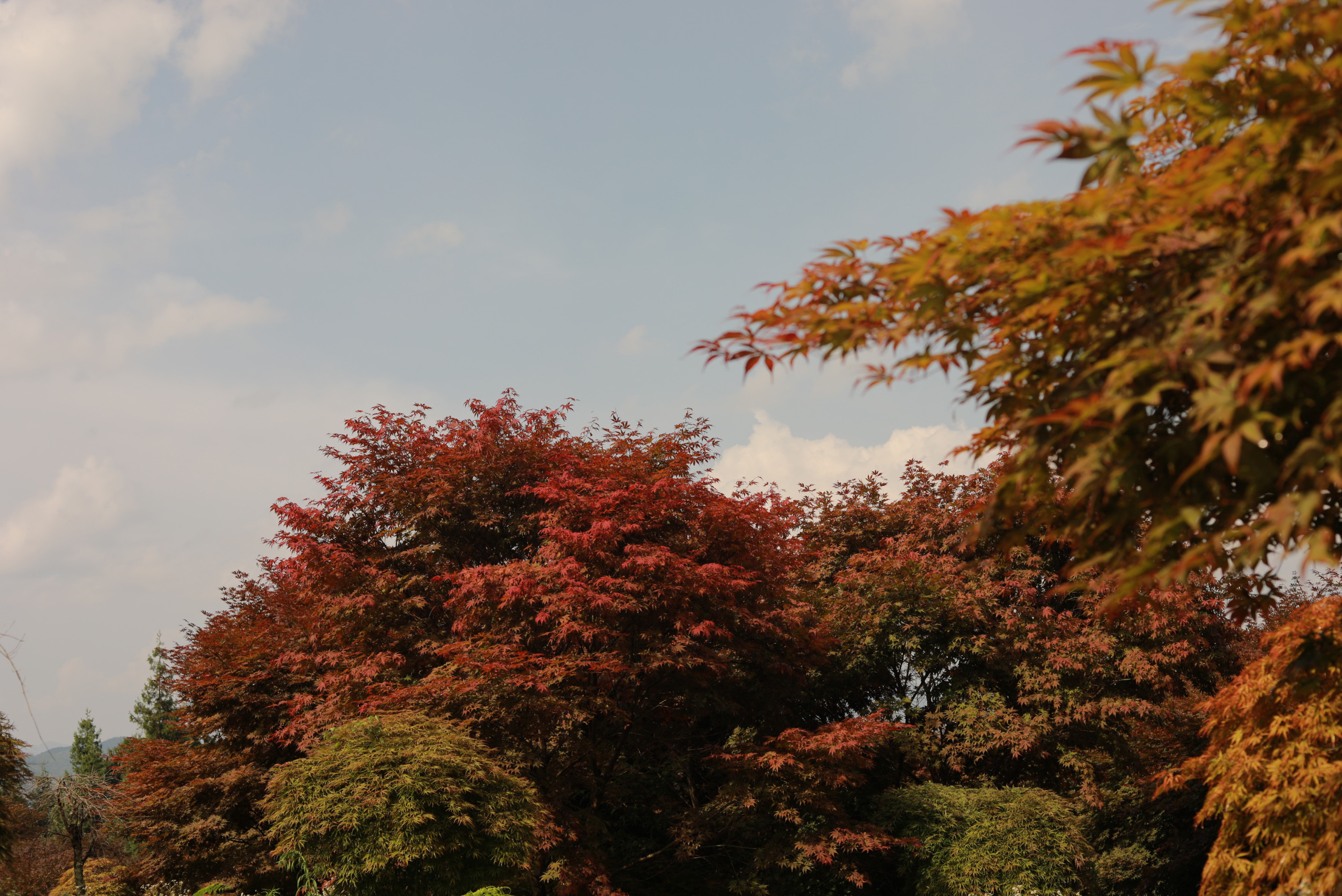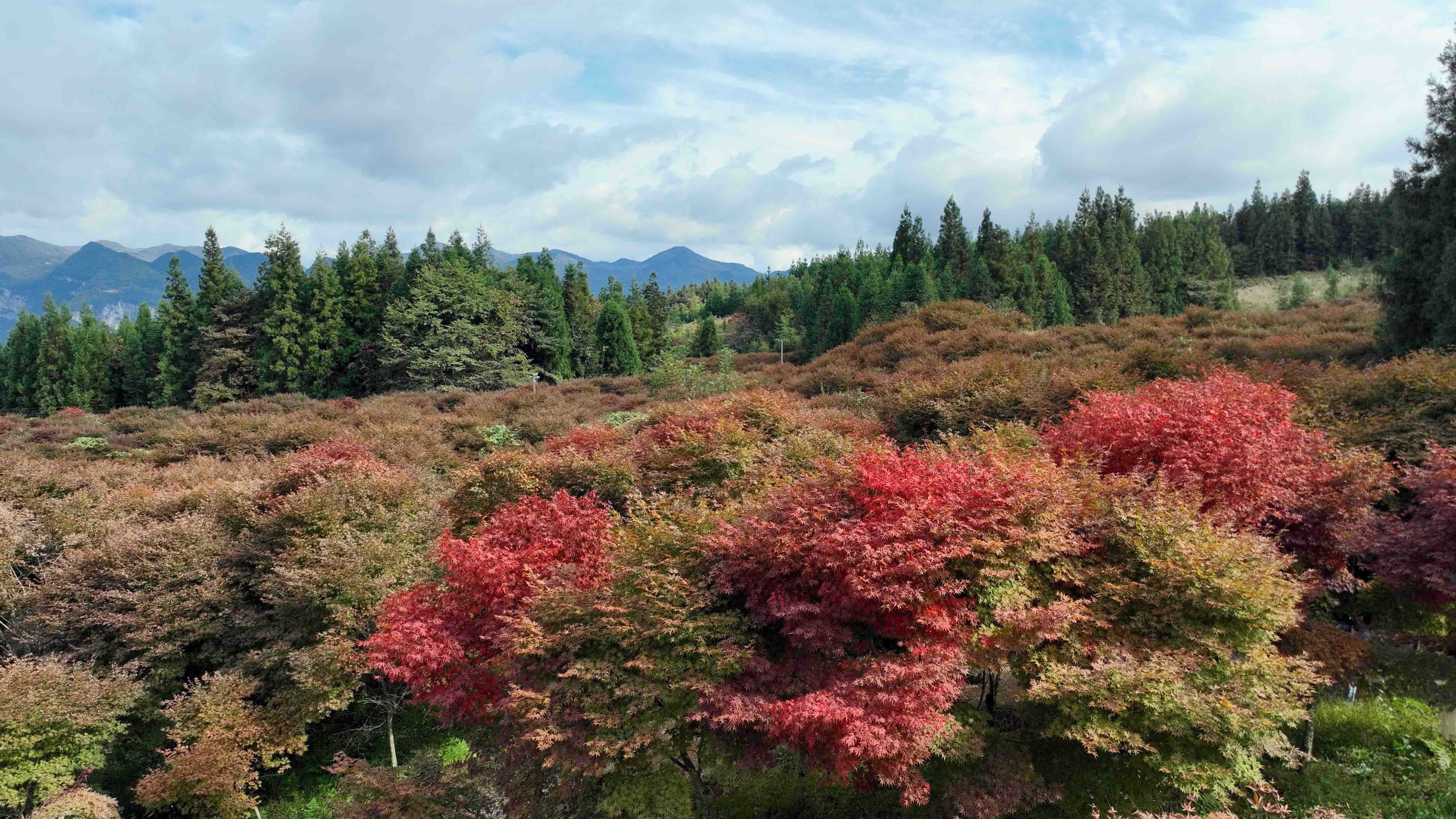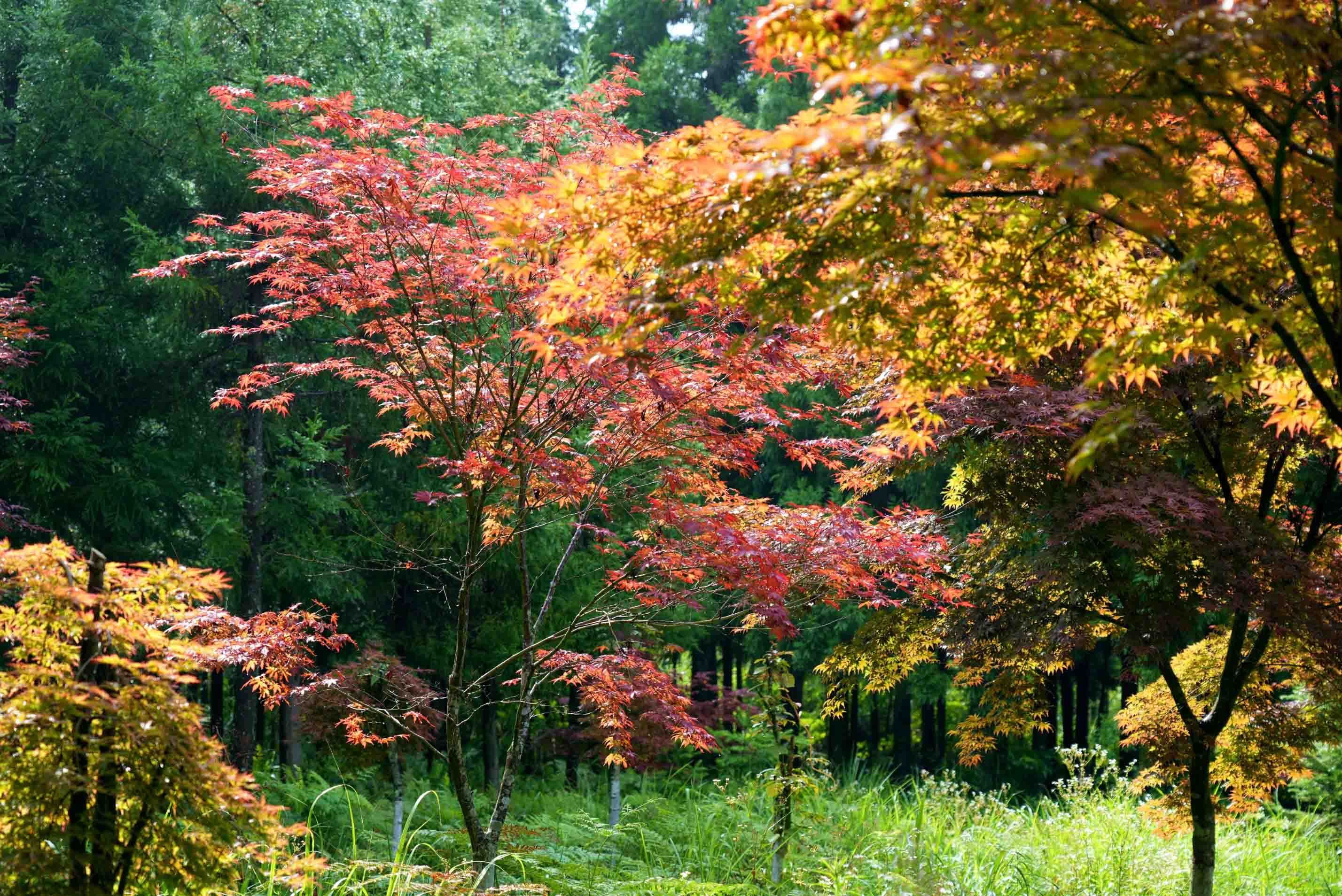 夏日的红枫不是深秋灼人的红,而是绚丽的橙红色,与周围苍翠的森林形成鲜明对比,宛如提前降临的秋色,为游客营造出视觉与体感的双重清凉。