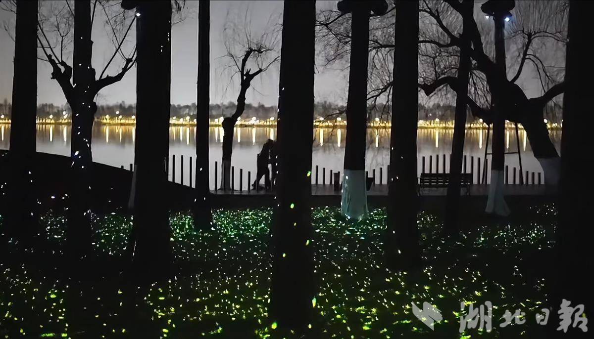 湖北日报讯(记者冯袁玥、通讯员钟珊)近日,东湖听涛景区内新增一处夜间景观,位于落霞水榭码头旁的杉树林灯光装置于每日夜间点亮,为市民夏夜休闲提供了新去处。