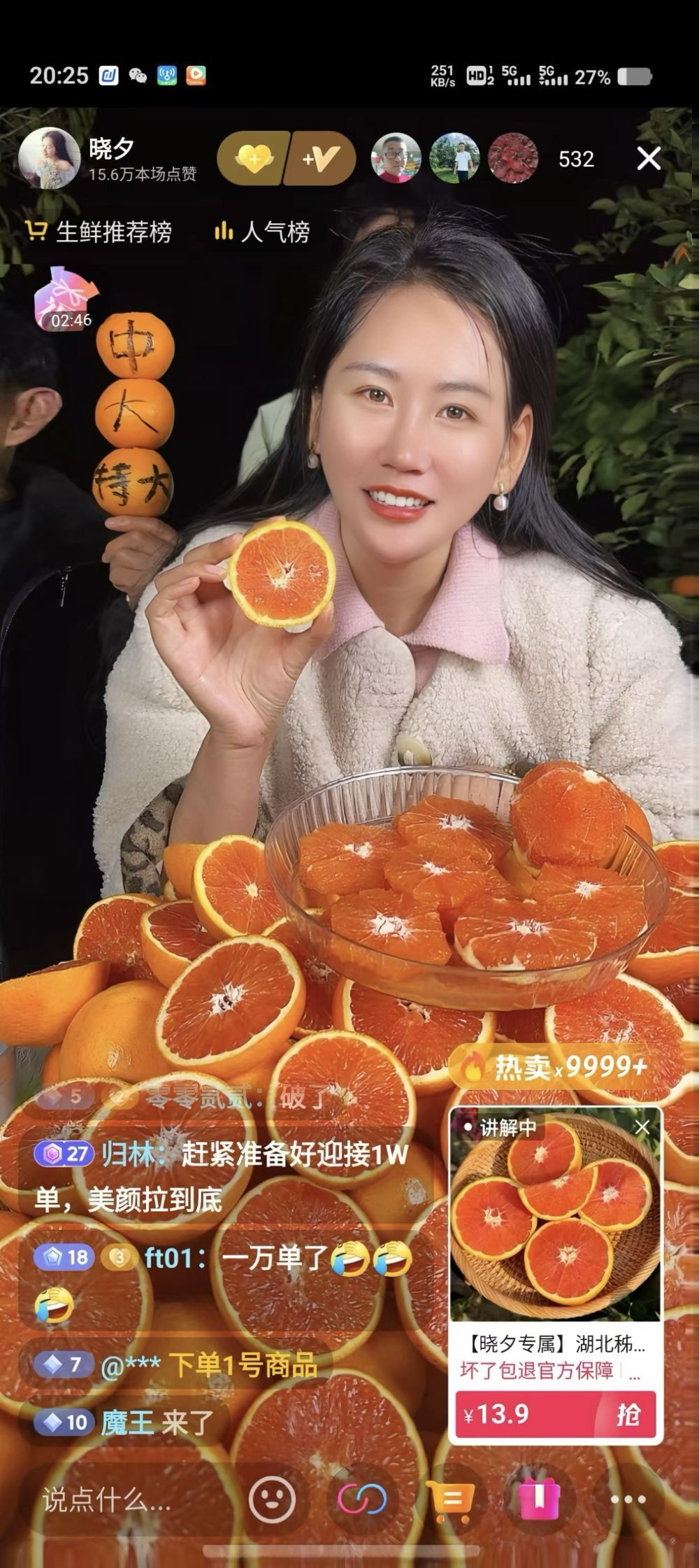湖北日报客户端讯(通讯员王思奇)在荆州市荆州区川店镇的田间地头,“90后”姑娘晓夕的身影格外忙碌。这位本名罗琼的年轻人,不仅是抖音上拥有200多万粉丝的“网红”,更是乡亲们口中“穿布鞋的网红总经理”。她的直播间没有炫目的灯光和华服,只有堆积如山的秭归脐橙、洪湖莲藕、老乡家散养的风干鸡,以及无数双渴望被看见的眼睛。