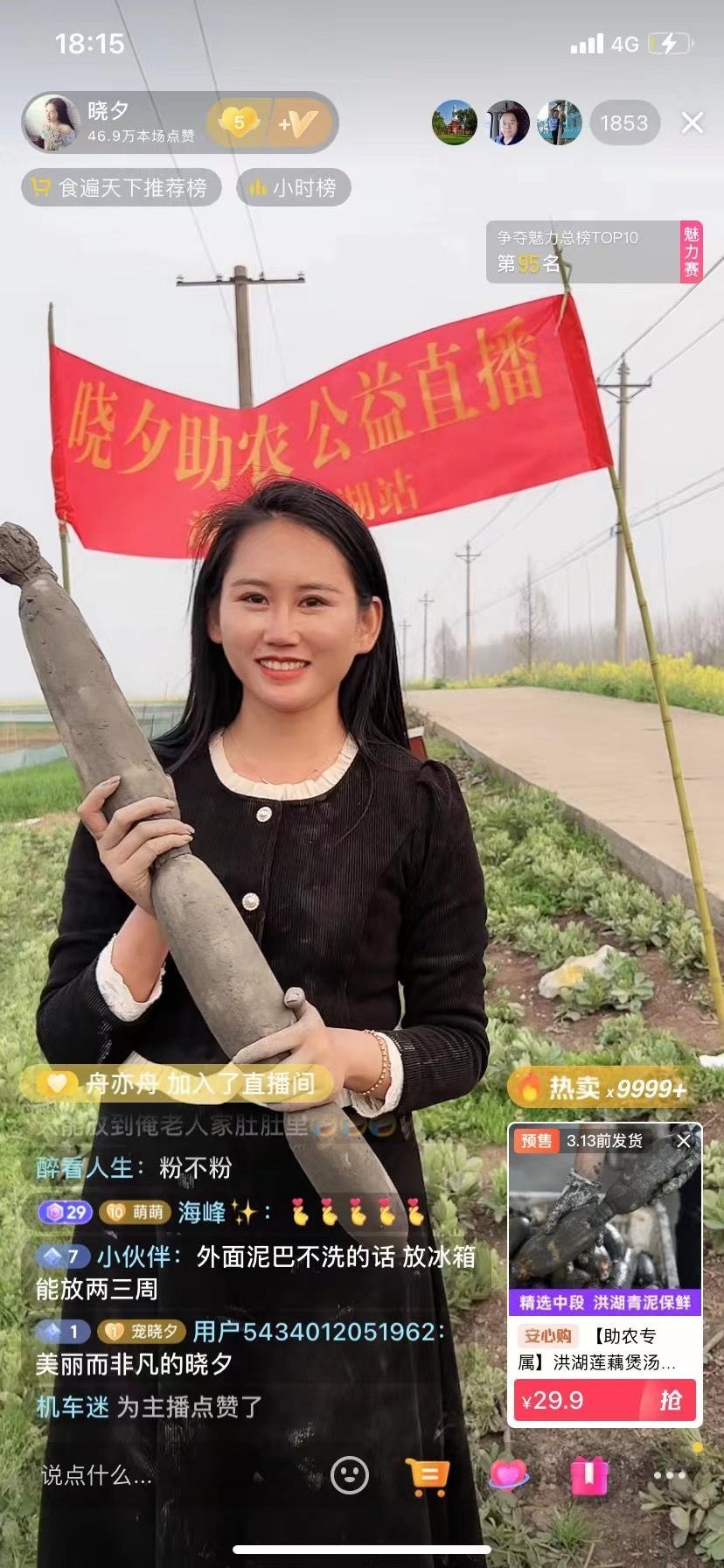 此后,晓夕的助农直播行动不断升级。2023年,洪湖莲藕滞销,她与37位达人合作,10天内售出50万斤莲藕,销售额达200万元。2024年10月,在马山镇枣林村直播近3小时卖茭白,吸引近5万名观众围观,销售额接近40万元。2024年12月,在松滋市卸甲坪土家族乡直播5小时,售出2054单农产品,销售额18万元,其中土家山羊肉卖出50头。“看到老乡们的笑脸,我觉得一切都值得。”她说。