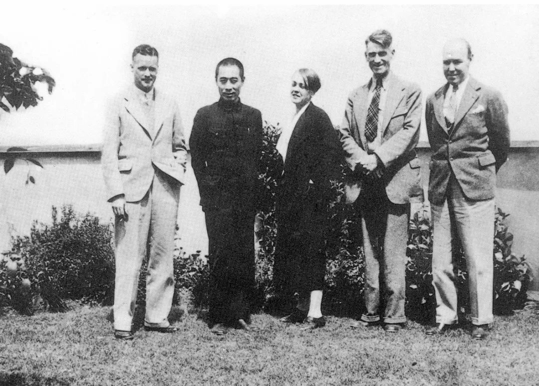 周恩来(左二)与国际友人留影(八路军武汉办事处旧址纪念馆供图)