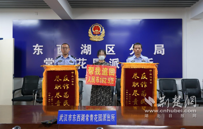 “资金已冻结,正在全力追查!”江汉区分局反诈中心民警斩钉截铁的承诺,让绝望中的陆女士重燃希望。6月23日,她专程手捧三面锦旗走进刑侦大队,向民警张震寰、周志恒、张浩及其反诈团队致谢。
