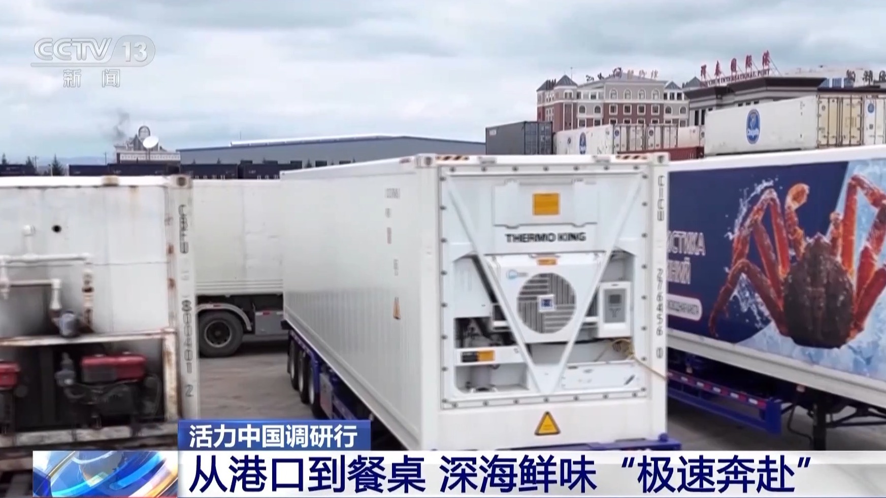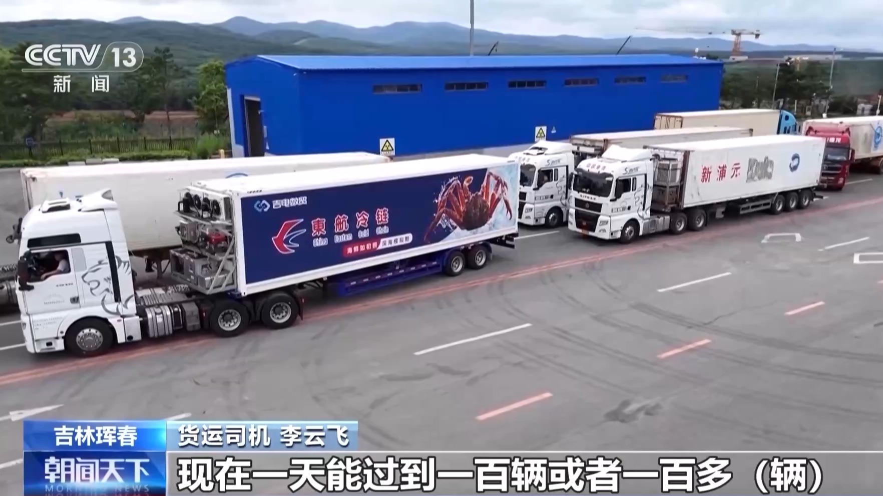 总台央视记者 唐颖:随着珲春口岸的开关,从俄罗斯运输海鲜的车辆正在这里进行通关手续的办理,20个小时以内,这些海鲜就将通过公路运输送抵北京和上海等地。