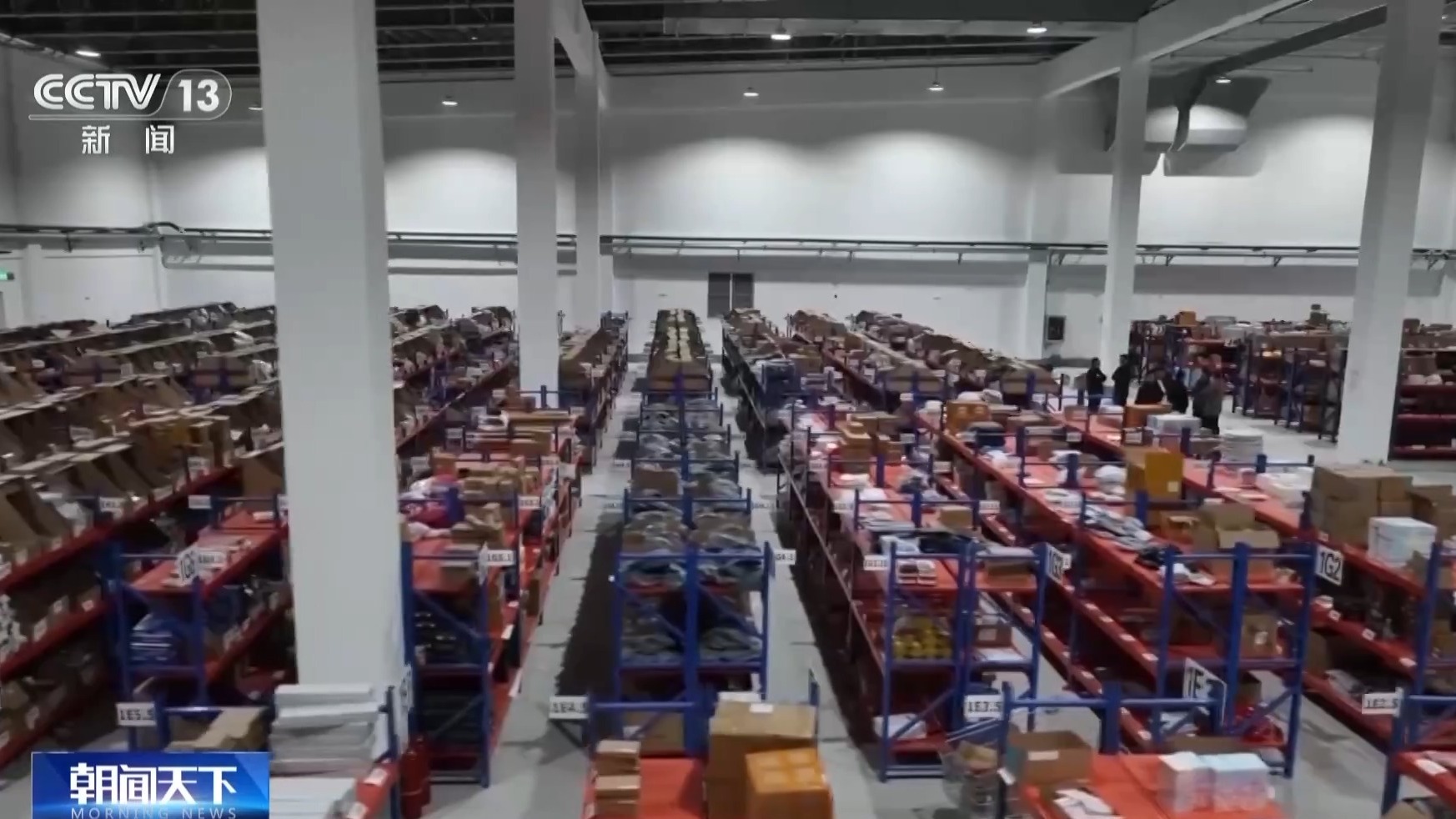 就在不远处的跨境电商保税分拨中心,各种货物被分拣、打包、装箱贴单,工作人员日均发运三四万票货物。