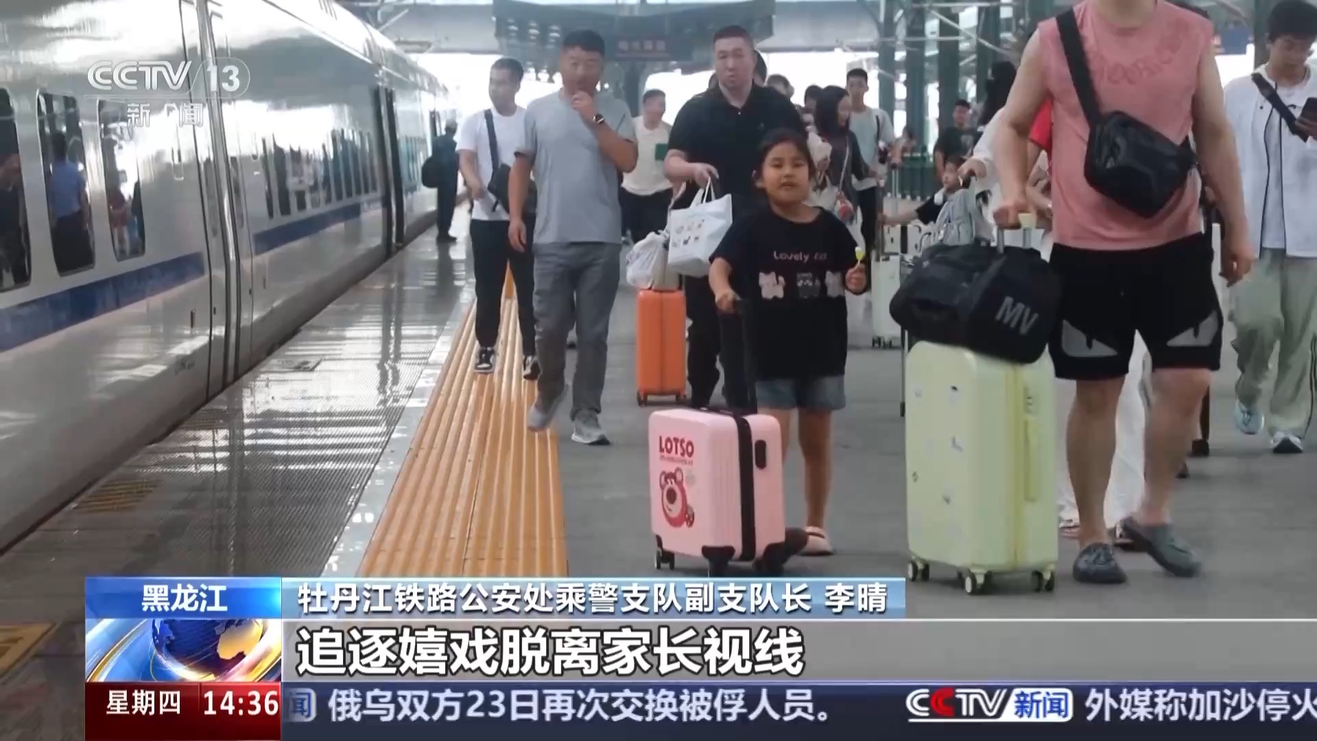 牡丹江铁路公安处乘警支队副支队长 李晴:除了刚刚说的几个区域,候车时,家长前往洗手间,儿童独处时会害怕,就会去寻找家长,导致孩子走失。上下车时,因为站停时间较短,家长急于上下车,难以兼顾同行儿童,导致孩童被遗落在站台或者列车上。列车行进中,孩子可能因探索车厢、追逐嬉戏脱离家长视线。
