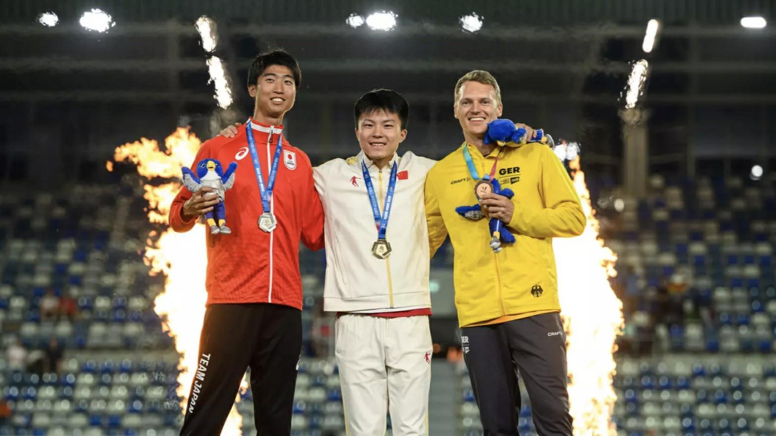 北京时间7月25日,2025年德国莱茵鲁尔世界大学生运动会男子跳远决赛,中国选手舒衡以8米09的成绩获得金牌,这也是中国田径队在本次赛事的首枚金牌。